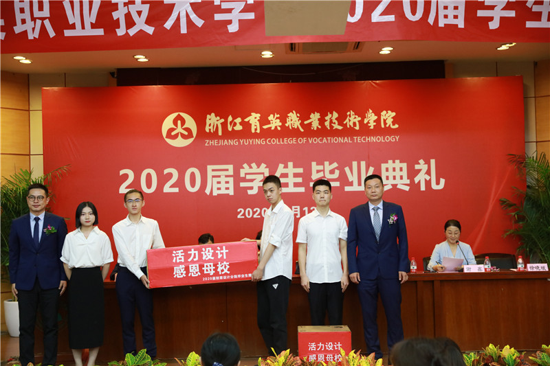 各分院毕业生们为母校献上精心准备的礼物,并说明寓意,回报母校的培育之恩。学院领导和分院院长接受纪念品。