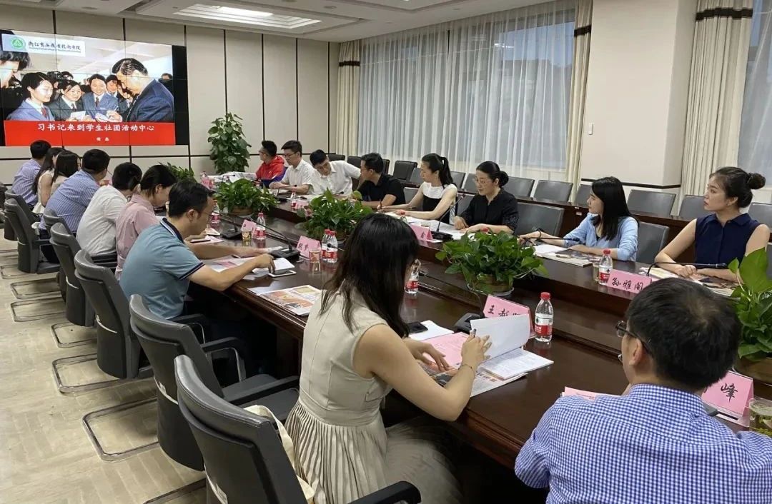 6月18日晚,共青团浙江省委在金华职业技术学院召开高校共青团学习《习近平与大学生朋友们》系列专题报道座谈会。团省委副书记周苏红主持座谈会,并讲话。学院党委副书记副院长谢鑫作为《习近平总书记来到学生社团活动中心》专题报道被采访对象应邀作专题分享。浙江大学等15所高校团委负责人分别畅谈心得体会。谢鑫接到团省委学校部邀请后,特别制作了PPT,把那段深刻在她心中的记忆与感动,向在场人员生动阐述、形象展示。她表示,育英学院是《习近平与大学生朋友们》系列专题报道中唯一一所民办高职院校。作为习近平总书记到学校视察的亲历者,17年过去了,但总书记温暖的手、平易近人的微笑以及和蔼朴实的话语深深烙印在她的脑海中。习近平总书记来到学生社团活动中心,来到大学生中间,与大学生朋友们亲切交流的场景,体现了他对青年学生的关心与厚爱;习近平总书记视察学院并评价学院“三个不错”,一直激励学院全体教职工,不断把学校办好。这些年来,学院一直坚持“立德树人”,坚持“以学生为中心”,坚持“关爱、引导、转化、激活”的学生工作方针,为学生搭建平台,培养学生的自信、培养学生大德大爱精神、培养学生的社会责任感,培养出“党满意、群众满意的合格人才”。