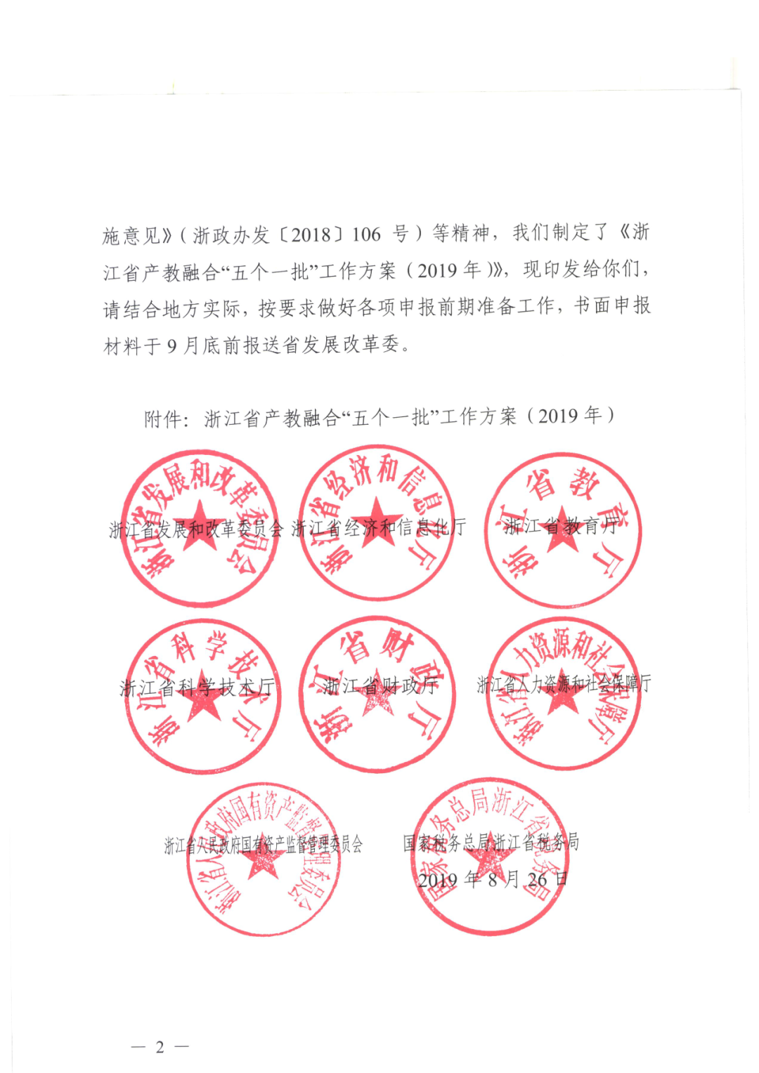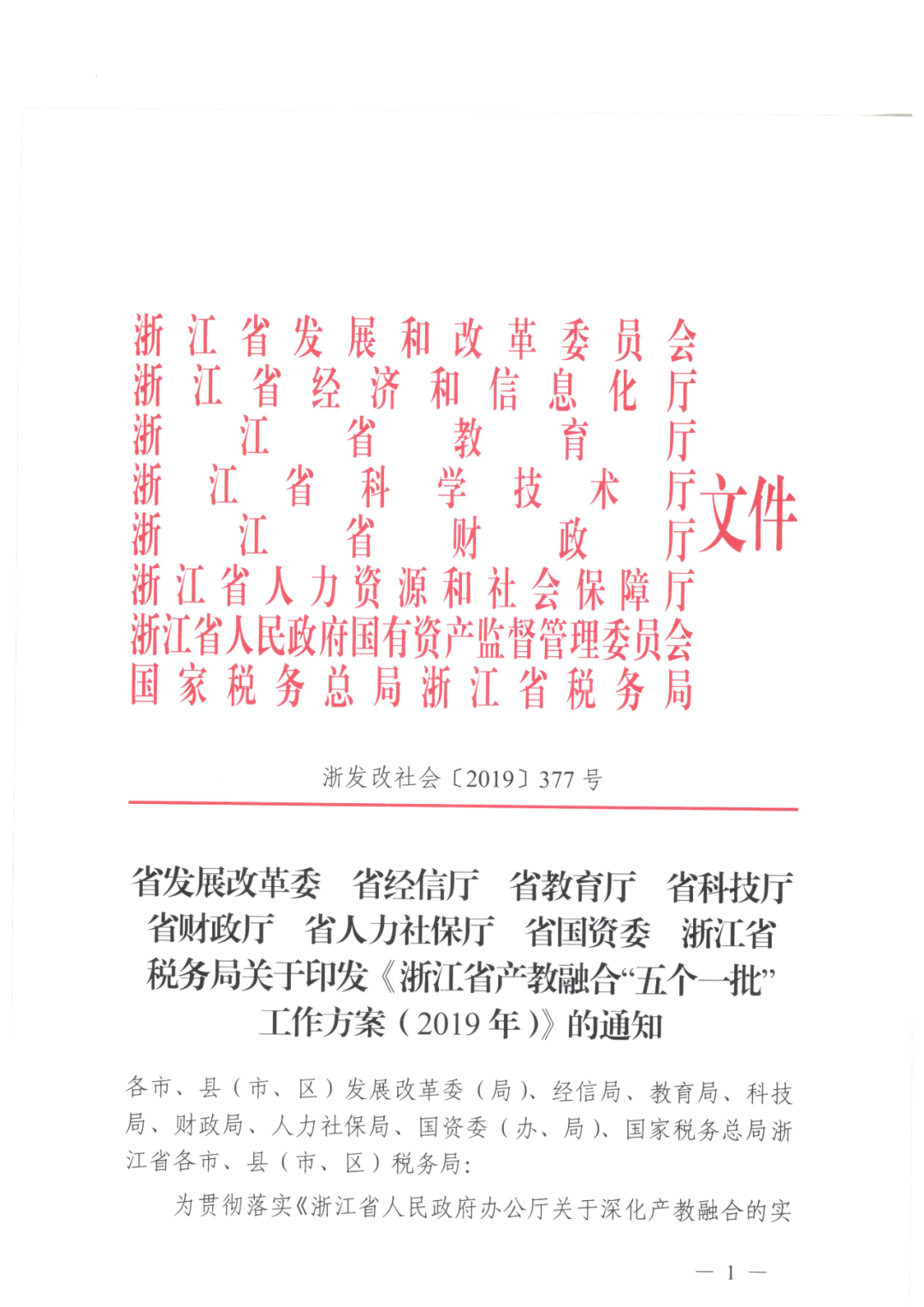 根据《浙江省人民政府办公厅关于深化产教融合的实施意见》(浙政办发〔2018〕106号)和省发展改革委等八部门制定的《浙江省产教融合“五个一批”工作方案(2019年)》(浙发改社会〔2019〕377号),经自愿申报、地方初审、专家评估和省产教融合“五个一批”评审工作组联审,最终确定入选名单。