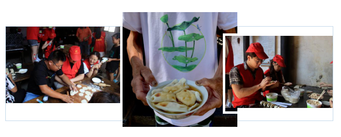 实践团举办了为村里老人包饺子送温暖的活动。在送饺子的过程中,了解到村里还有部分生活特别困难的孤寡老人需要帮助,通过村支书方志华的带路,特别将米和油等生活慰问品送到了20户老人们的家中,绘就了一个个温暖的“同心圆”。