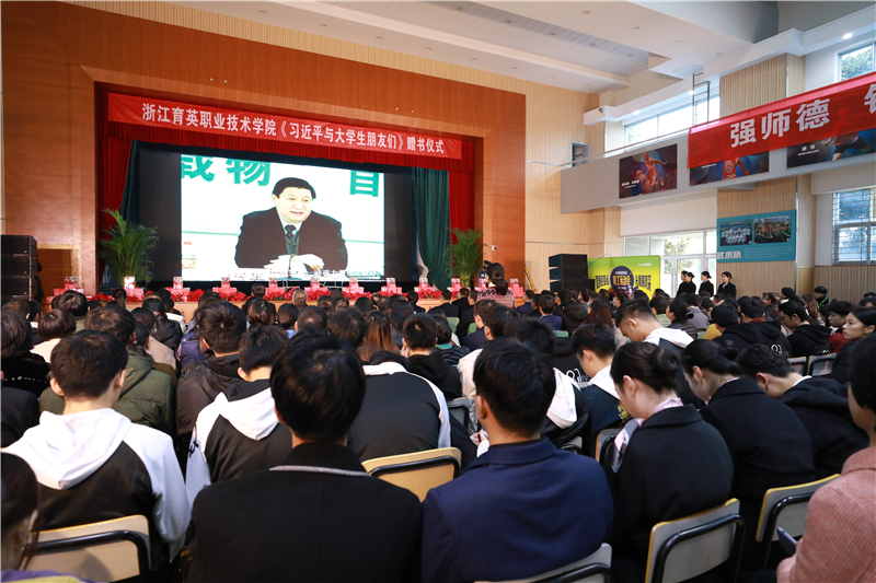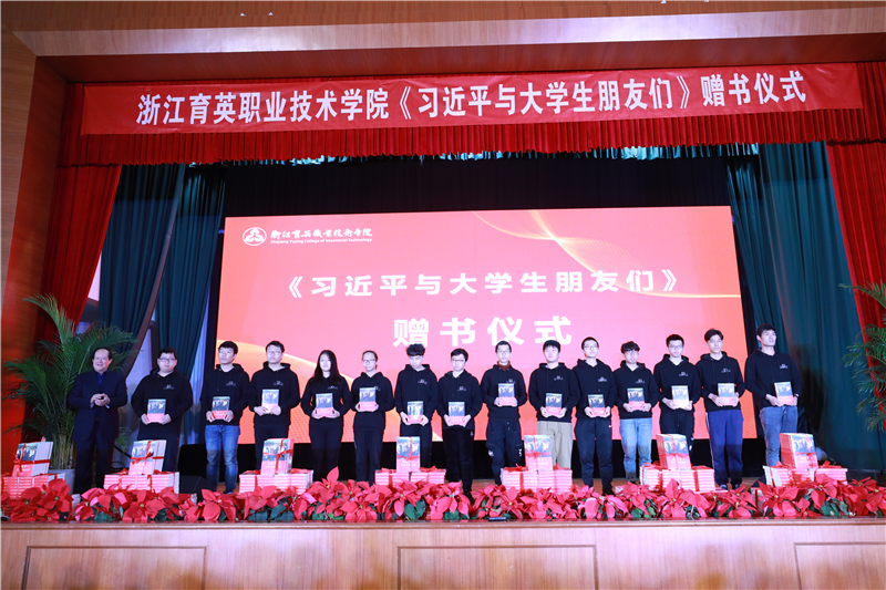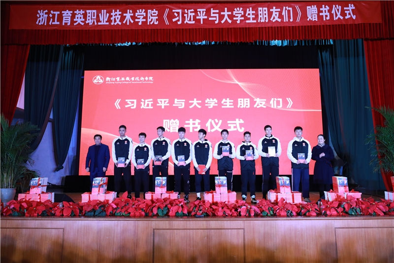 会上举行了《习近平与大学生朋友们》书籍赠送仪式。学院向全体教职工及在校生赠送该书。各党总支、直属党支部负责人,第十七届浙江省大学生程序设计竞赛、第十一届蓝桥杯全国软件和信息技术专业人才大赛全国总决赛获奖者,学院田径队、篮球队、游泳队、大学生艺术团戏剧团等在各项大赛中获奖的学生及各班班长上台领取赠书。会后,每个在校学生都领到了该书。