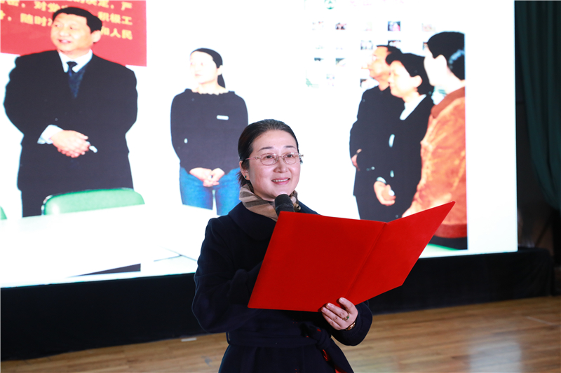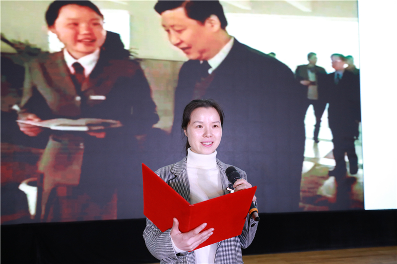 全国高校党建工作样板支部书记、浙江省三育人岗位建功先进个人、商务贸易分院国贸教研室主任傅祝屏代表教师发言,倡议全体教师不忘初心、牢记教书育人使命,强师德、铸师魂、落实立德树人任务,争当新时代“四有”好老师。