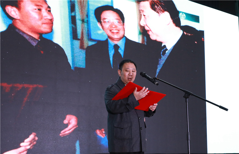 会场播放了视频,介绍了《习近平与大学生朋友们》 一书的背景情况,回顾了习近平总书记2003年4月12日视察学院、来到学生社团活动中心的情景。