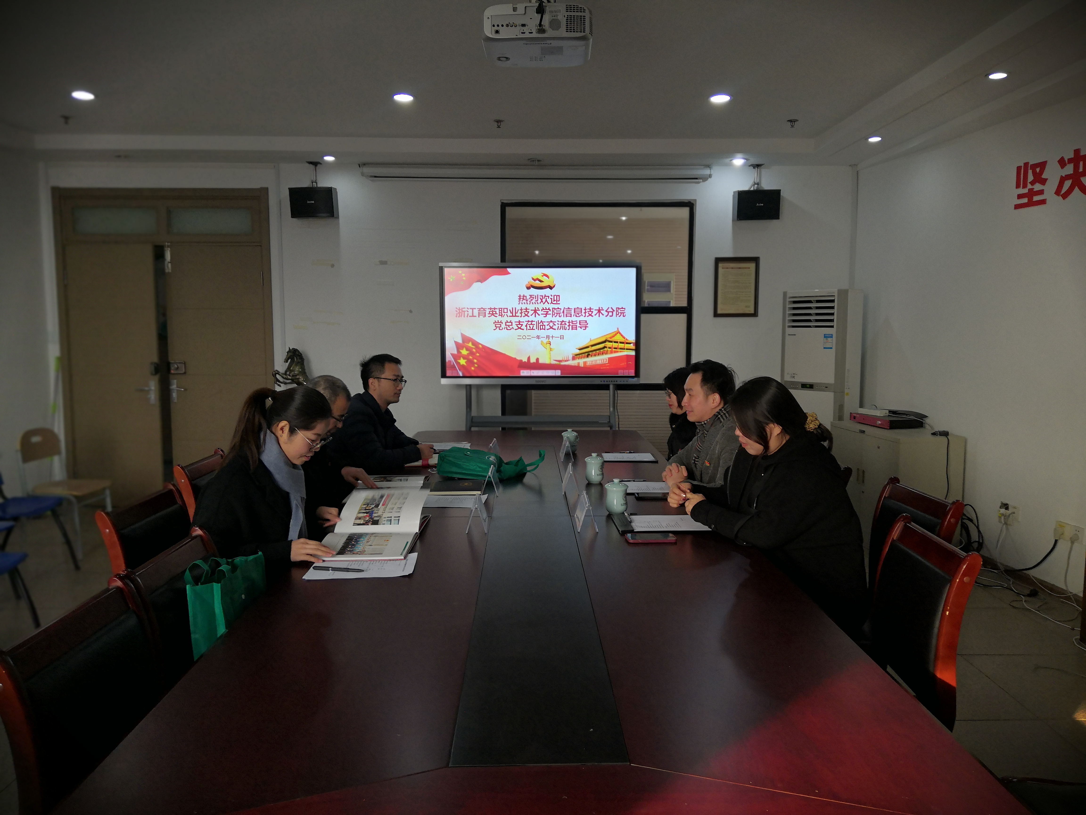 2021年1月11日,信息技术分院党总支书记石宇钦、学生第一支部书记蒋玥、学生第二支部书记颜芹芹来到了浙江商业职业技术学院烹饪与旅游学院党总支进行党建学习交流。浙江商业职业技术学院烹饪与旅游学院的党总支书记刘晨、党总支副书记王洪贞和学工办副主任朱辰杰在18号楼601会议室热情接待。