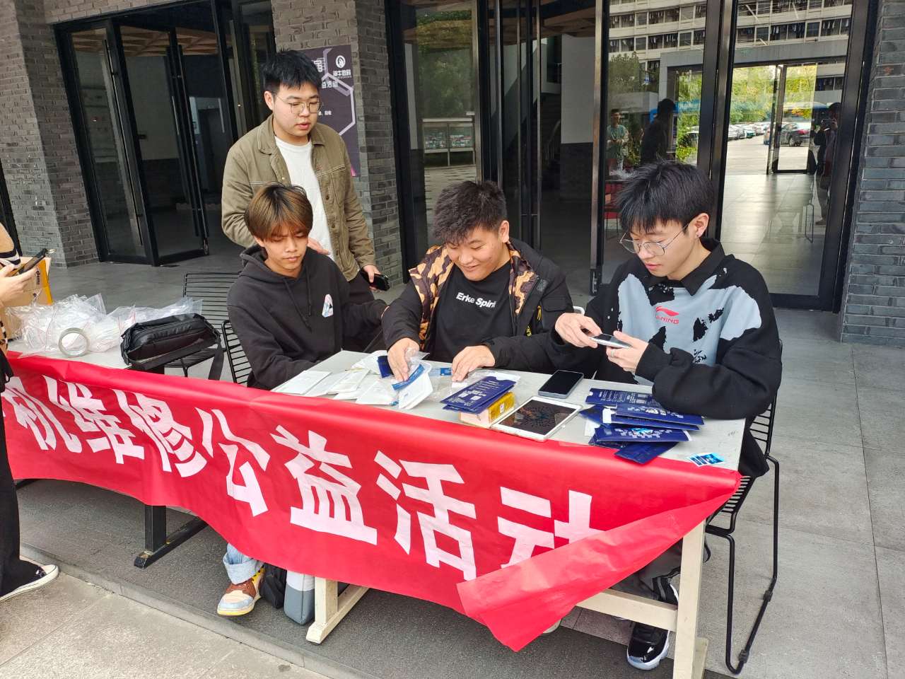 本次活动从下午1点开始,持续到5点左右。为了服务好广大师生,手机俱乐部社长张学成和指导老师易明升多次沟通,并决定邀请学长同时也是海牛数码的负责人胡鹏参加本次活动,确定了包括免费贴膜、手机咨询、维修、回收、电脑清洁等在内的服务项目。本次活动准备的比较充分,从人员到设备到耗材,基本能满足现场师生的需求。活动现场为一百多位师生提供了服务。对不便于现场实施的服务项目,也给出了解决办法。参加活动的同学表现得非常敬业,耐心操作,细致服务,善始善终。本次活动也得到了信息分院和团委的大力支持。