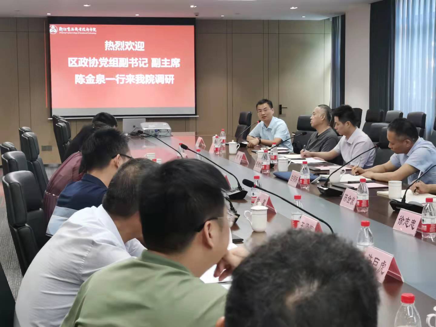 为贯彻落实钱塘区委关于开展“我们都是钱塘人”大讨论、大担当、大比武系列活动精神,认真履行政协民主监督职能,积极建诤言、出实招、谋良策,助力探索钱塘区平安创建工作的新思路、新举措,9月17日上午,区政协专项集体民主监督第一小组在区政协党组副书记、副主席陈金泉的带领下,一行8人来我院进行调研活动,学院党委书记、区人大代表谢鑫接待来客并作主题汇报。