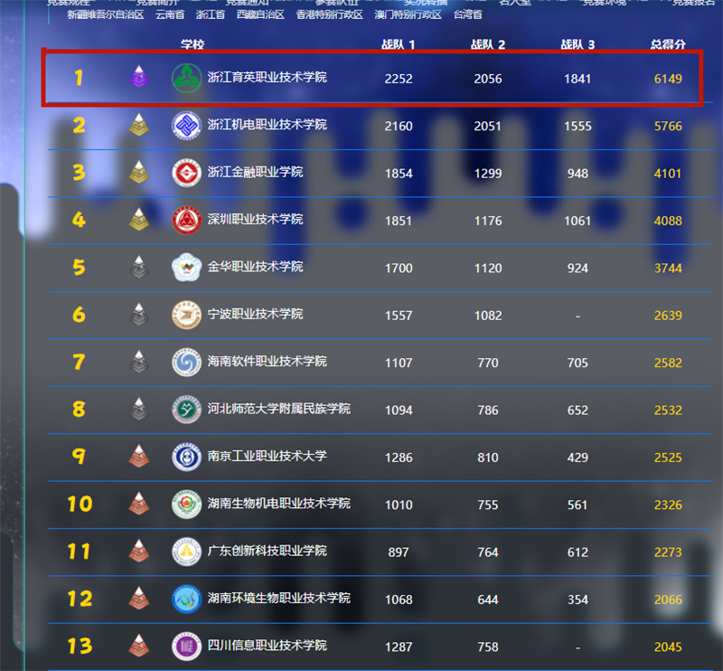大赛吸引了347所本专科高校1100支队伍10946名选手参加。我院信息技术分院选派了40名队员分四个战队参赛。本次比赛是本专科一起排名,奖项分开评。在全国347所本专科高校的总排名中,我院也是位列第45名。