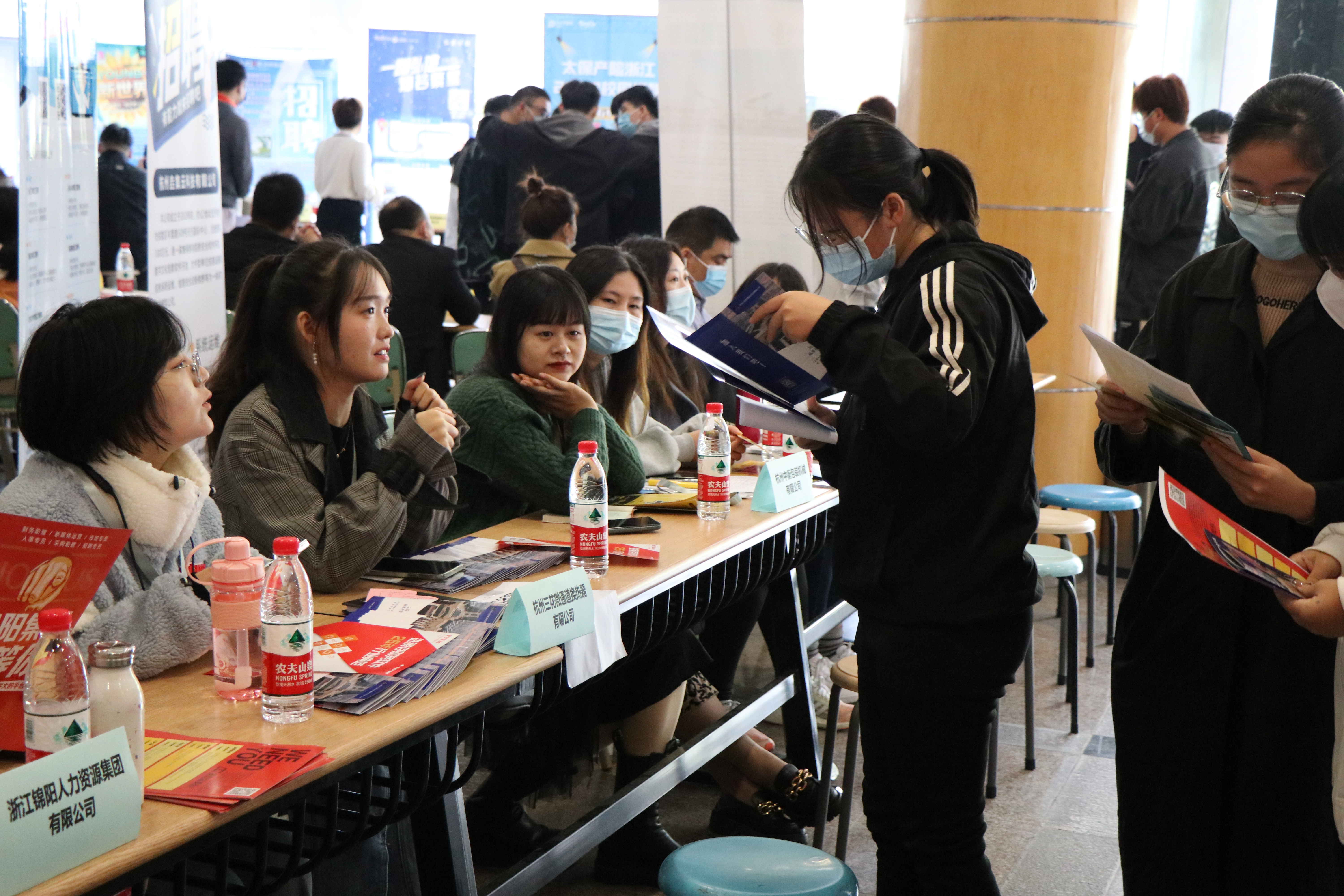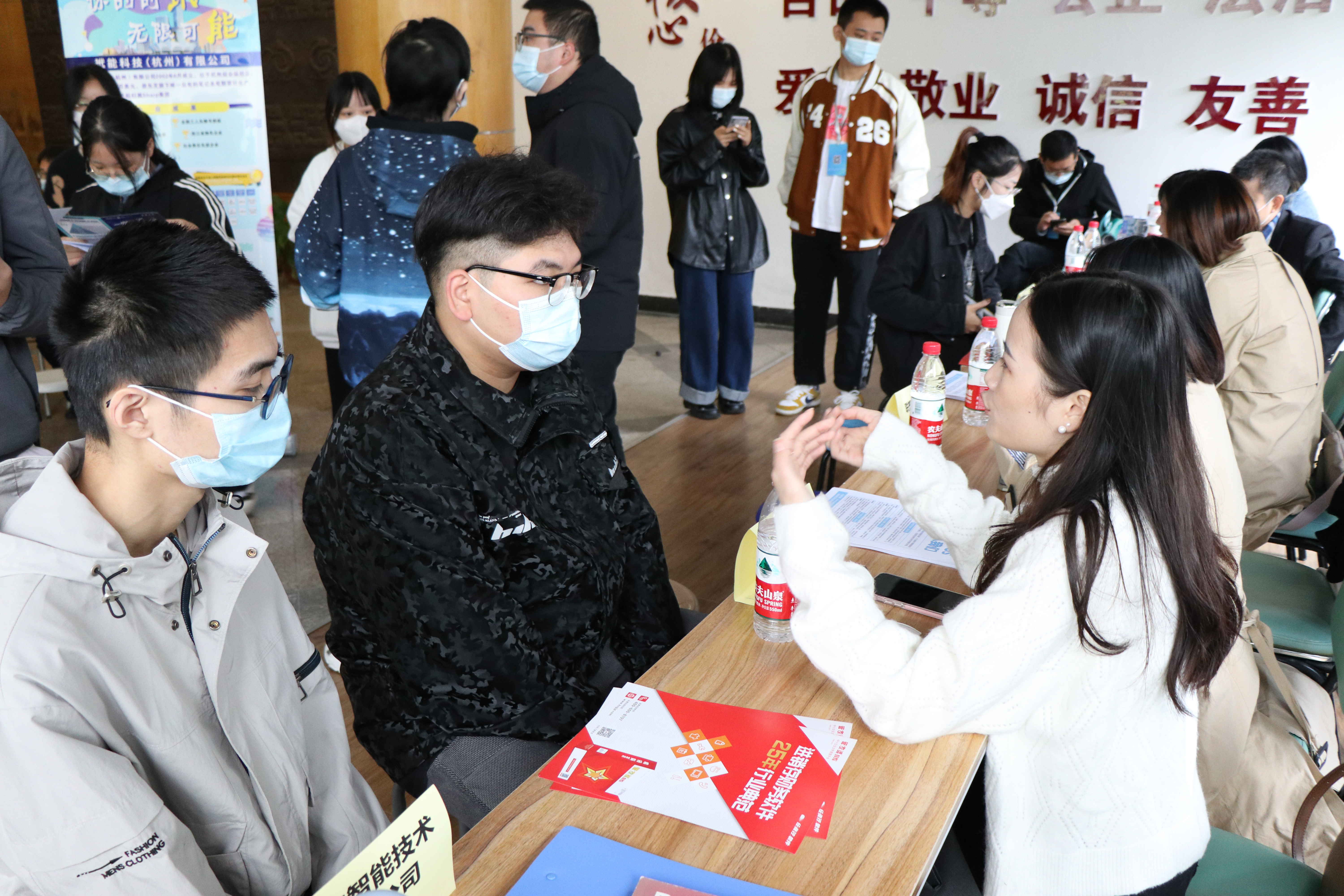 职来职往,金秋时节,又是一年毕业季。为切实做好分院毕业生就业工作,大力构建毕业生与用人单位的交流平台,积极为用人单位输送应用型人才,分院于10月22日在一号报告厅门口的大厅举办了信息技术分院2021年“职场扬帆”校园招聘会!参加此次招聘会的企业有浙江大胜达包装有限公司、玳能科技(杭州)有限公司、杭州恒生聚源信息技术有限公司、硕格智能技术有限公司、中国太平洋财产保险股份有限公司浙江分公司等企业。此次招聘会面向全分院2022届毕业生,32家企业及单位前来招聘,累计提供工作岗位500余个。
