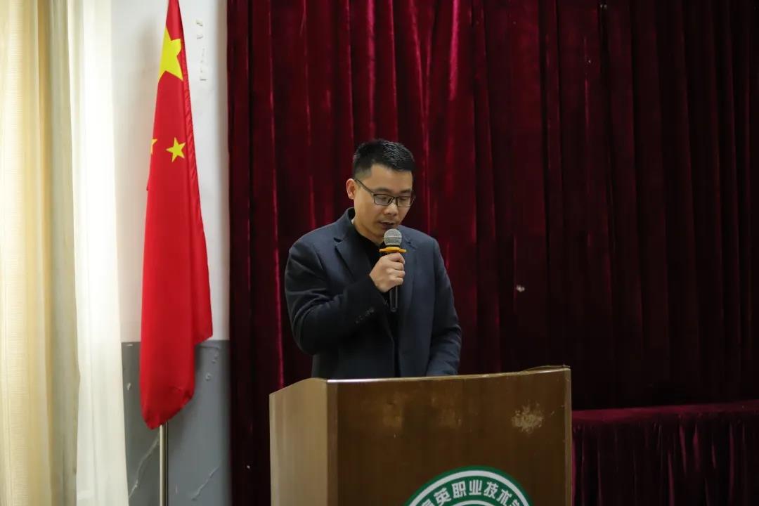 院学生会执行主席、杭州市优秀团员、学生干部代表徐晨阳同学讲到“走进校门的是大学生,培养出来的是职业人”,从大学生到职业人,承载着“厚德载物、自强不息”厚重的底蕴。而作为学生干部的我们,要坚守初心,弘扬育英精神。她鼓励同学们在校期间积极参加学校的各项活动。她说“请记得故事开始的那个地方,心中有信仰,脚下才会有力量”。敢于尝试,在坚守中收获成功,坚信每一个育英人会越努力越幸福,在平凡中的坚守,在坚守中收获成长。相信在做的各位,一定会响应徐晨阳同学的号召,凝心聚力,牢记使命,做中国共产党的后备军,做新时代发展的主力军。