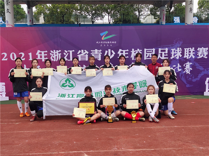 4月23-28日,浙江省校园足球联赛女子高职高专组比赛在义乌举行,我院女子足球队以五战全胜的战绩勇夺冠军,并获得2022年全国大学生足球锦标赛的参赛入场券。孙璟琳被评为“最佳射手”,门将王琼洁在整个赛程仅失一球,被评为“最佳守门员”。陈艺艺、孙璟琳、相燕云、张钿甜被评为优秀运动员。领队为季勋龙,主教练为金海伟。
