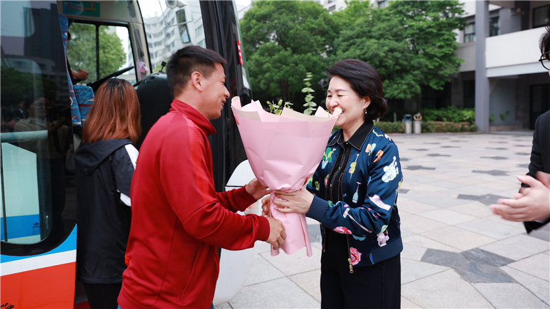 4月28日下午,学院执行院长黄爱平,副院长王敏、徐晓斌,学生处处长王贤军及部分师生代表在教学区广场热烈欢迎足球队健儿们凯旋,并为运动员和教练员献上鲜花。