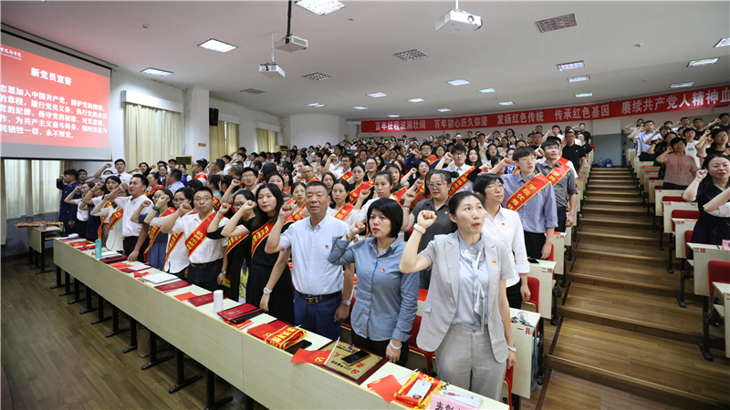 与会新党员在组织部长郑国军带领下宣誓,全体党员重温入党誓词。