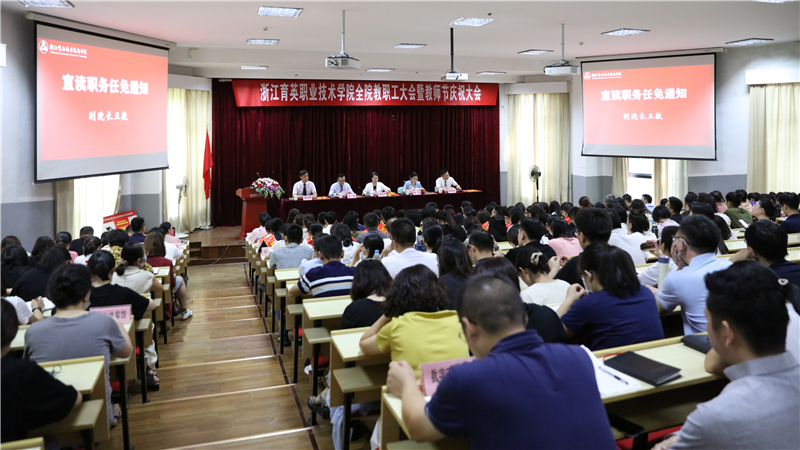 执行院长黄爱平发表讲话。她代表学院,向为学院教育事业辛勤耕耘、为高素质“职业人”培养作出贡献的教职员工表示诚挚问候和衷心感谢,对新加盟的26位新教职工表示欢迎,向为学院赢得荣誉的教师或教师团队表示祝贺,向全体教师表示节日的祝福,向在假期中为学院积极工作的教职员工表示感谢。