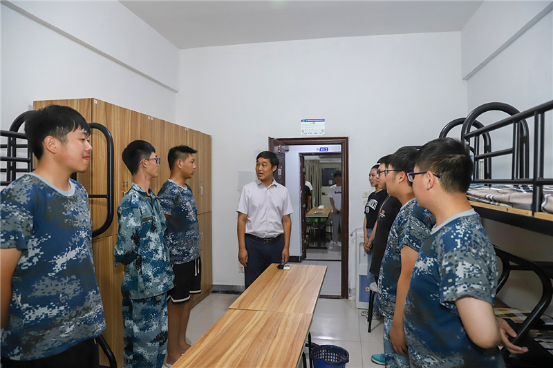 “家是哪里的?”“军训生活适应吗?”“寝室住的习惯吗?”每到一个寝室,执行院长黄爱平都亲切询问同学们是否适应大学生活。“有什么问题和需求,及时向辅导员和宿管老师反映”。
