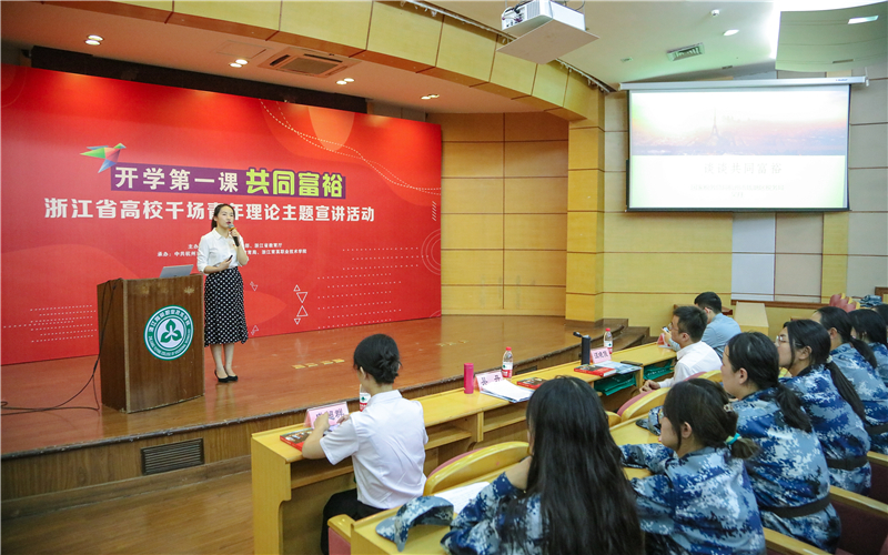 9月26日,浙江省高校千场青年理论主题宣讲团7位老师来我院,分别在三号报告厅和党员活动室宣讲,围绕“共同富裕”的主题,为同学们带来了精彩的“开学第一课”。300多名大一和大二学生聆听报告。