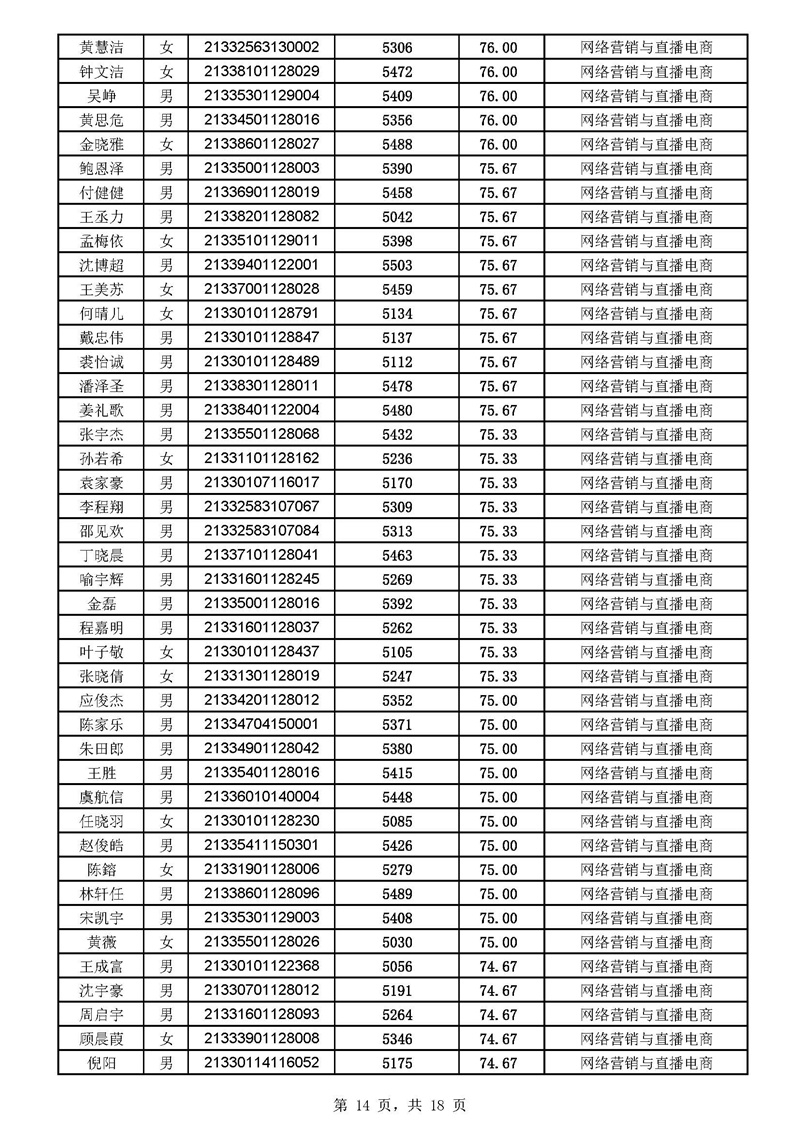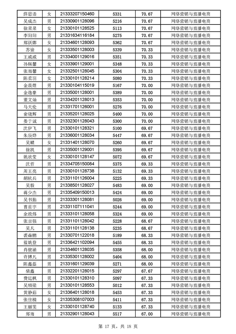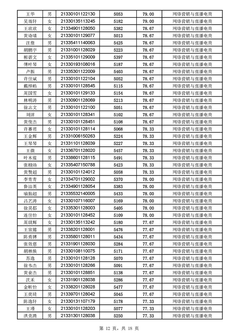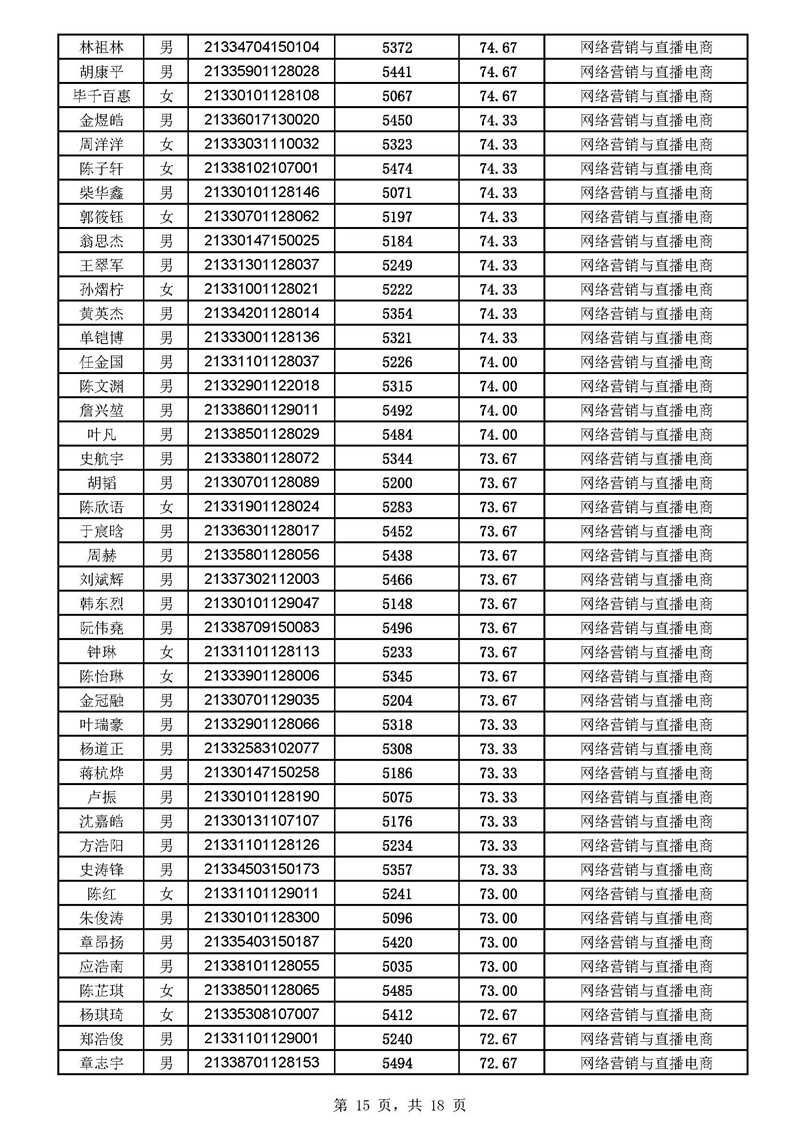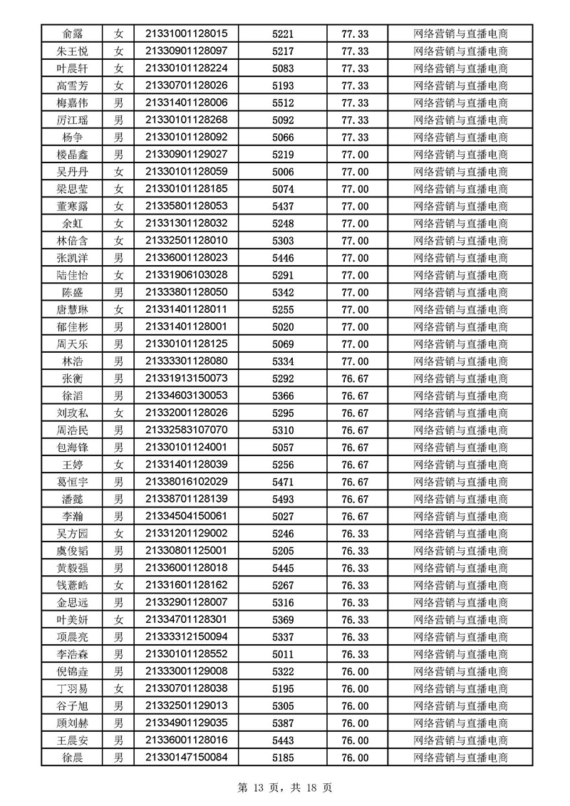 2021年高职扩招分专业拟录取考生名单