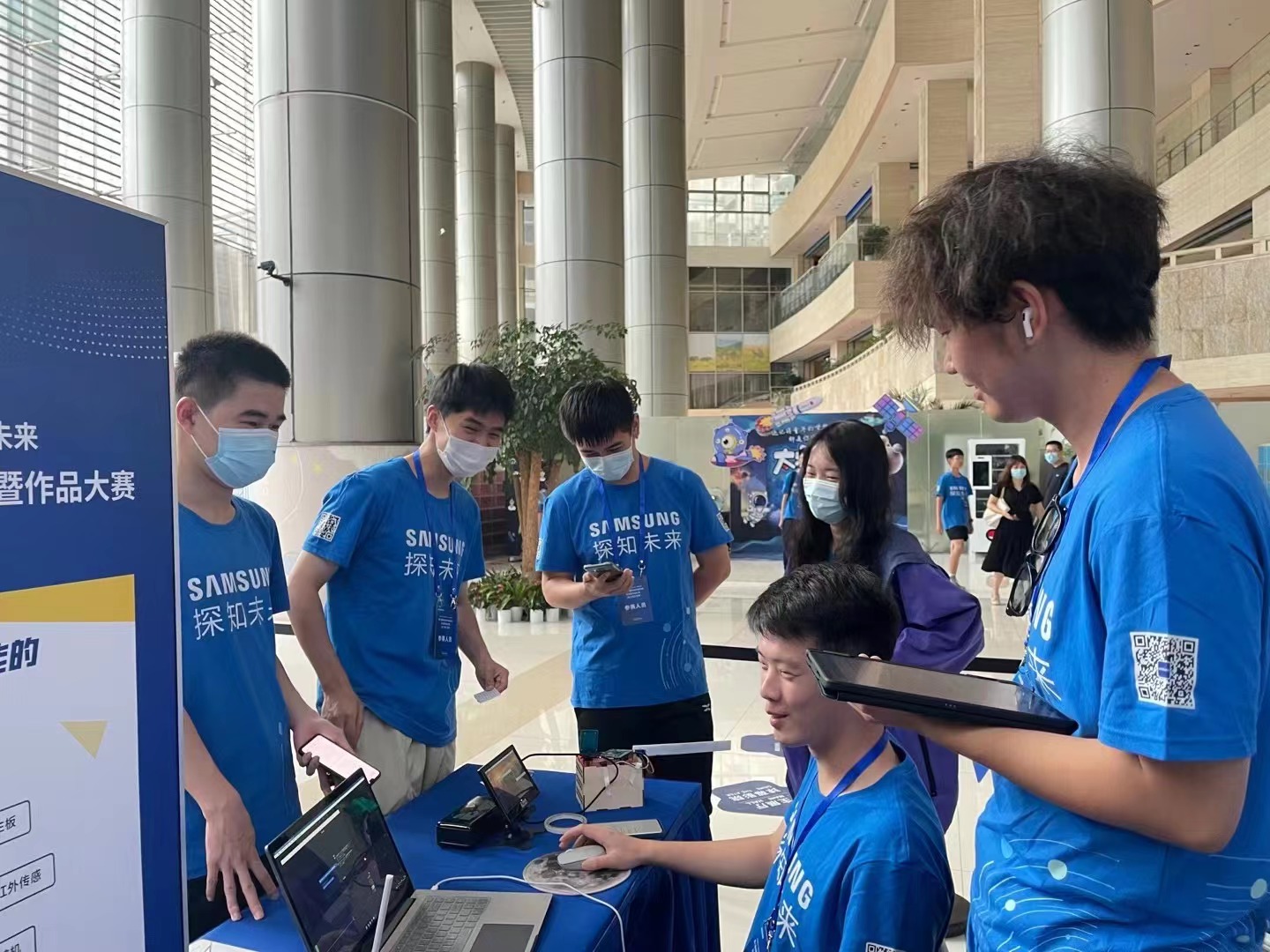 指导老师何燕飞介绍:“这是我们第一次闯入国赛,备赛期间酷暑难当,队员们不舍昼夜,认真准备,或升级代码,或修改讲稿。深夜的光影下,还能看到他们大汗淋漓、衣衫尽湿的身影。队员们用自信与拼搏诠释了育英精神。”