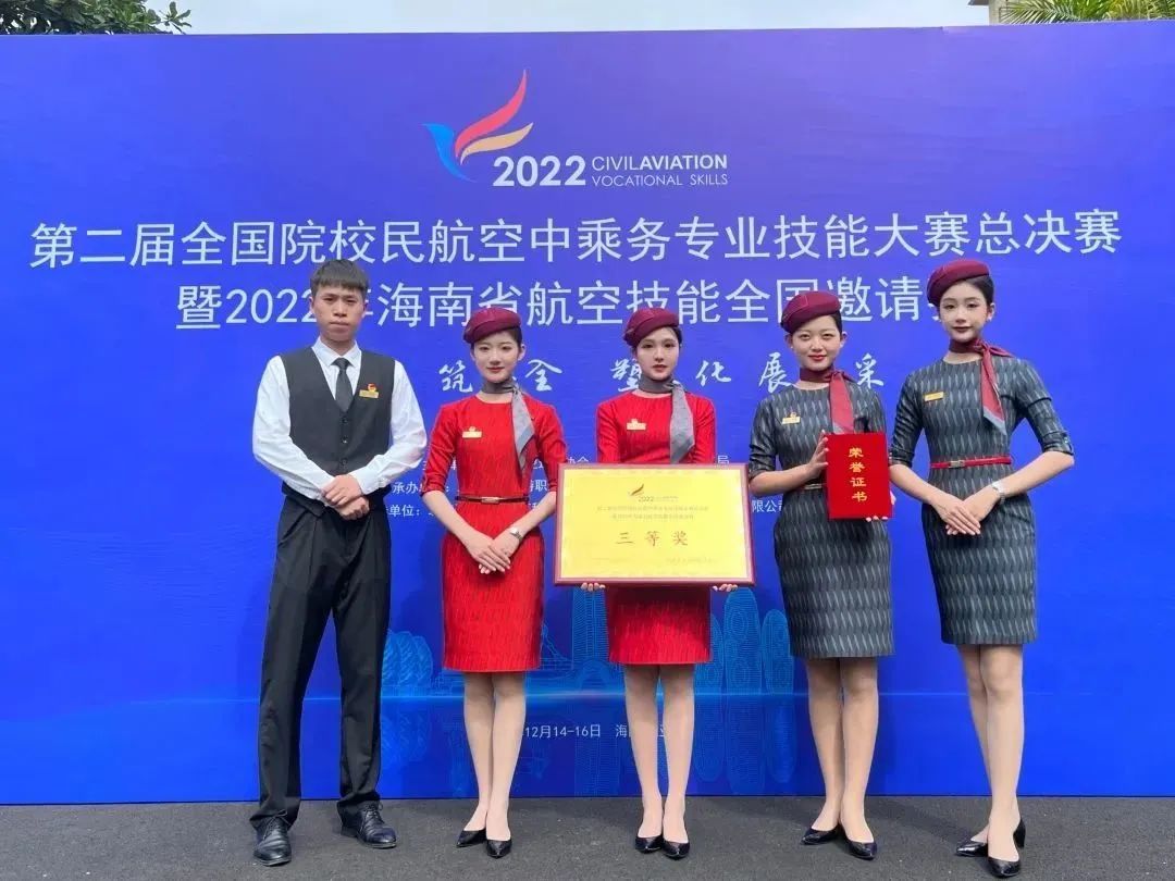 近日,第二届全国院校民航空中乘务专业技能大赛总决赛暨2022年海南省航空技能全国邀请赛顺利闭幕。我校参赛选手21空五A班施幸男、李舒畅,21空五C班汪佳艺,21空五D班徐雨桐、俞越荣获全国第四名、团体三等奖。指导老师夏灵盼、何依利。