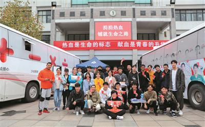 学校田径队教练与队员参加义务献血