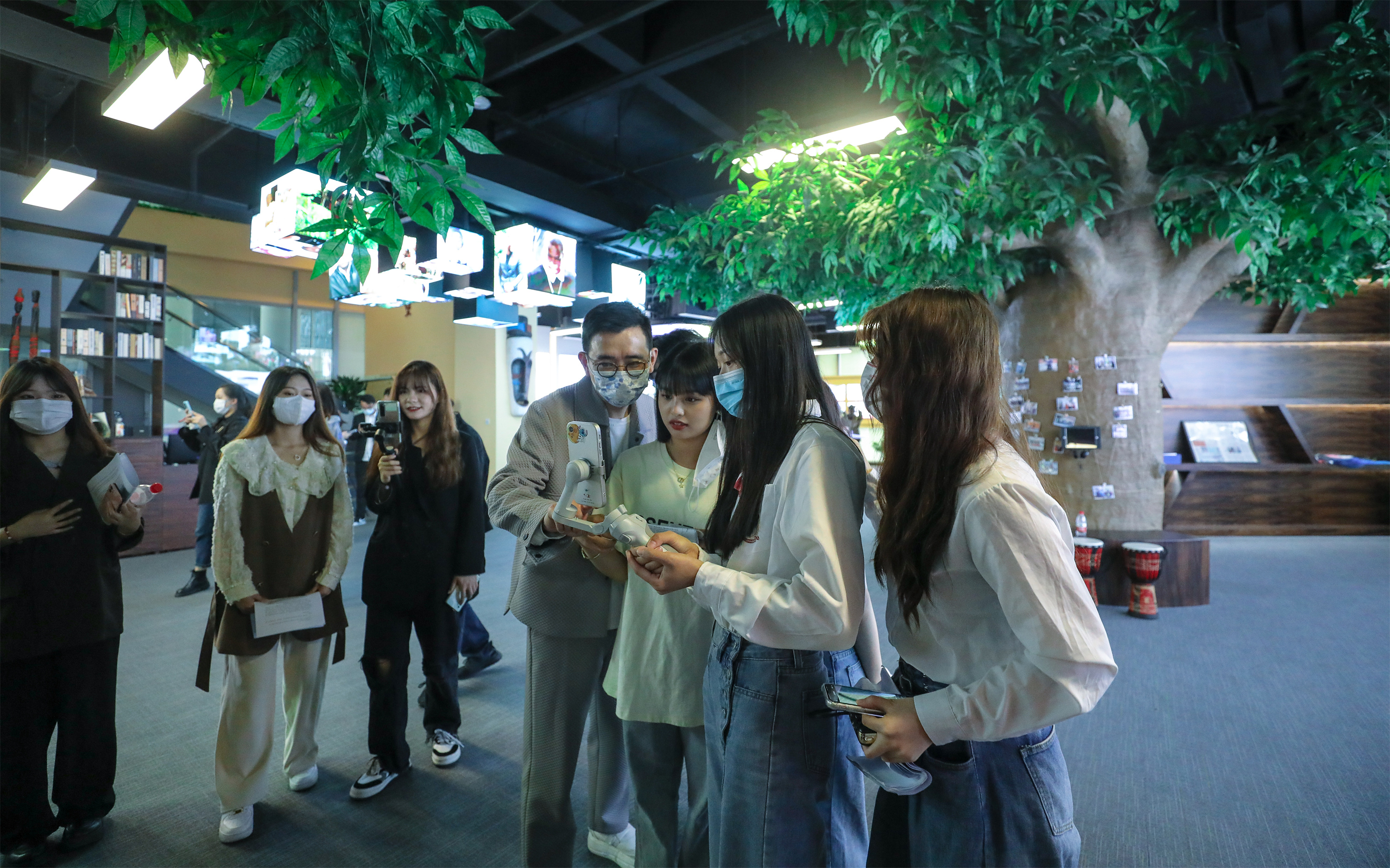 走播组主要负责和线上观众互动,以走播拍摄的方式介绍非洲特色产品。21网络直播班学生康梦萍说,这次沉浸式走播非洲好物,收获很大,知道了该怎么去与主播及观众互动,学到了走播的完整流程。21网络直播班学生胡鑫莹说:“在活动开始前,老师为我们讲解了具体工作流程和内容,我的主要任务是编写与非洲留学生互动的内容及用观众的思维去提问和解答。活动过程中,举着手机稳定器拍摄视频考验了我的耐力,和老师、学姐们的默契配合,让我感受到了团队合作的重要性。”