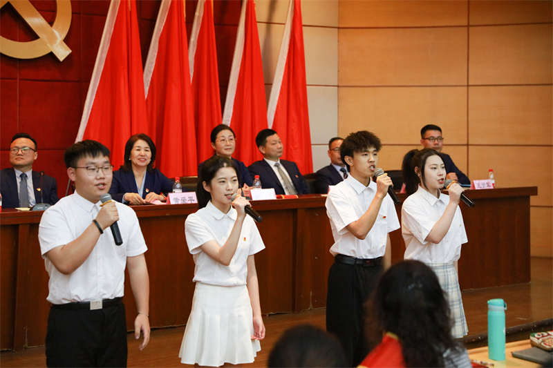 谢鑫发表讲话。她代表学校党委向全校广大师生党员致以节日的问候,向受到表彰的先进集体和优秀个人表示热烈祝贺。她回顾101年来中国共产党的光辉历史和伟大成就,总结学校在一代代共产党员和育英人努力下取得的党建和思想政治工作方面的成绩。