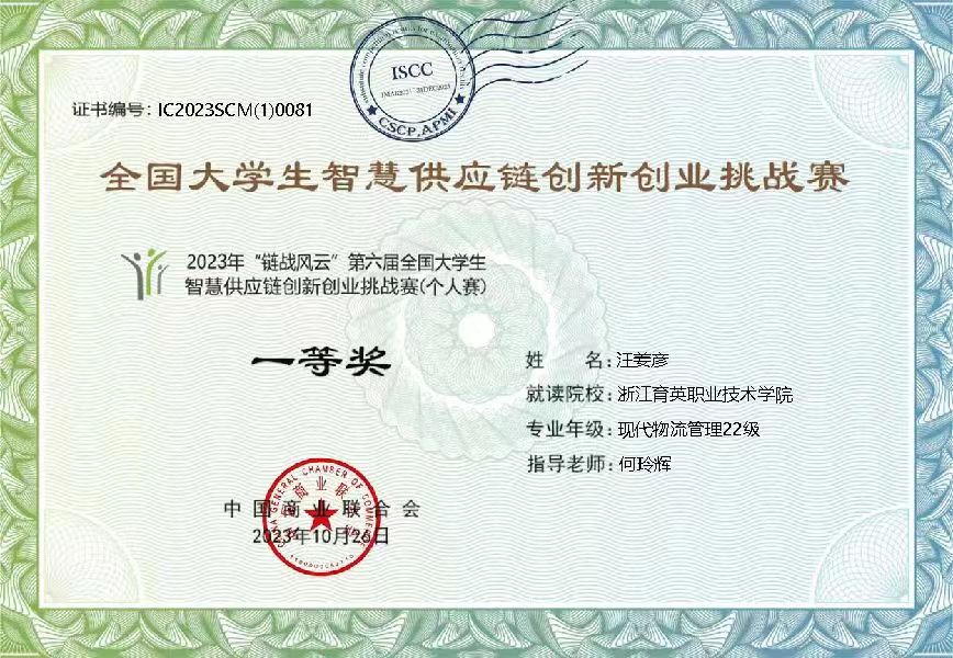 物流管理专业师生经过近一个月的训练,得到了优异的成果,何飞飞、汪姜彦获一等奖;钱志勇、沈晓艳、范逸晨、蒋雨洁二等奖;王洁、邓博文、郑世博、杨宇航、许文心三等奖。 指导老师为何玲辉、王文青、石纳芳、姜小明、陈刚、许佳燕、孔令峰。