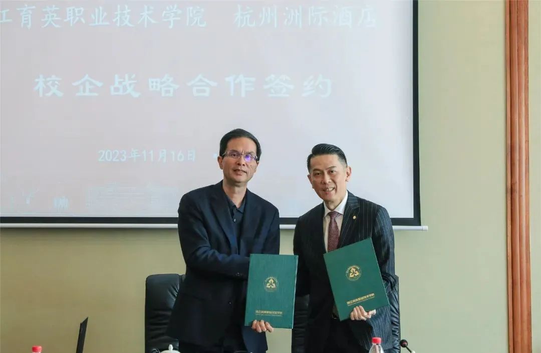 近日,学校与杭州洲际酒店战略合作签约仪式在九楼会议室举行,学校将与洲际酒店集团合作成立“育英•洲际英才培养研习中心”,校企协同培养高素质复合型酒店专业管理人才,开展中国特色学徒制培养模式改革与实践。