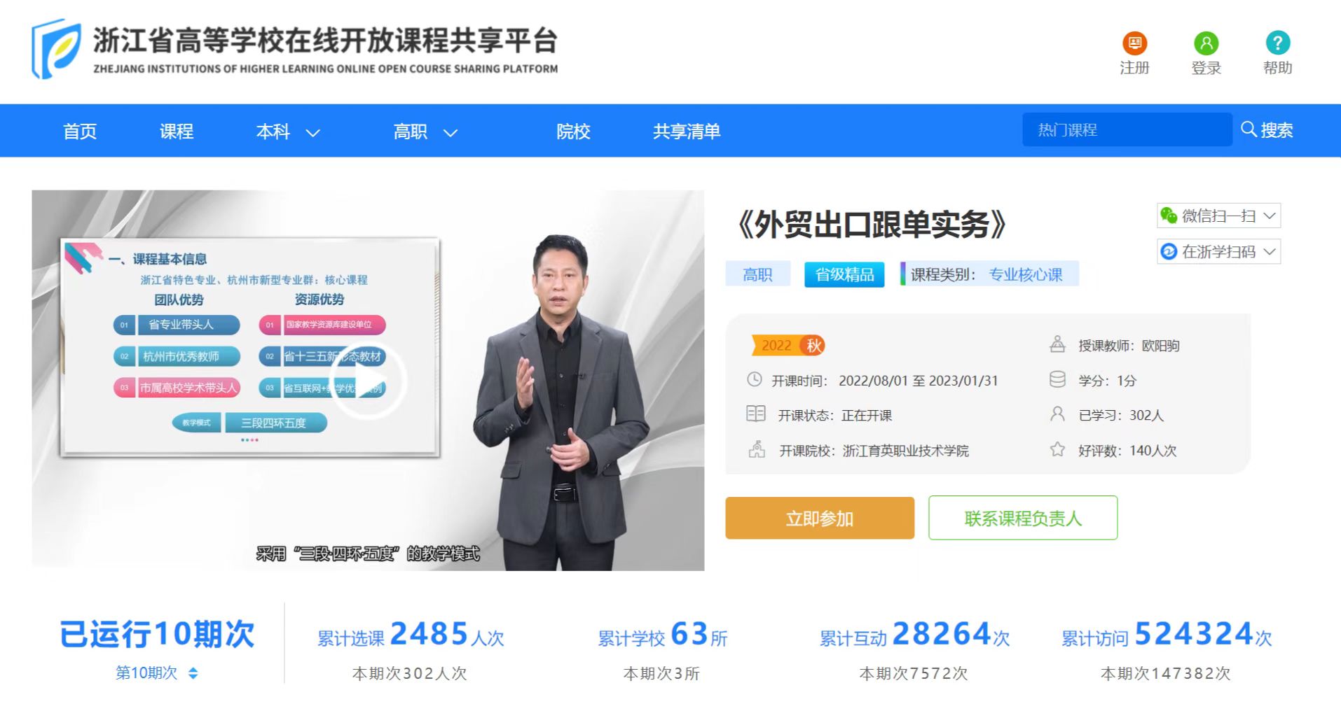 《外贸出口跟单实务》课程入选2022年职业教育国家在线精品课程。也是由全国外经贸职业教育教学指导委员会经专家组审定推荐进入国家在线精品课程行列的唯一高职专科类课程。