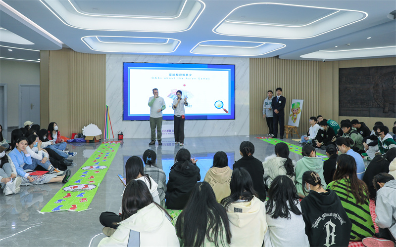 在民航交通学院英语第二课堂“共迎亚运”系列活动课上,同学们通过图片、视频、活动展示、趣味游戏等多样形式,了解亚运文化的英文表达,提升中华文化认同度和自豪感。22空五C班学生李尚霖表示:“英语第二课堂是我们走到教室之外的一个生动活泼、和谐快乐的温馨空间。形式和内容丰富多彩,每期活动采用预约制。非常感谢学校为我们提升职业素养和丰富校园生活搭建的平台。英语第二课堂让我们快乐学习英语、有效提升能力、开阔眼界、拓展交际圈。”