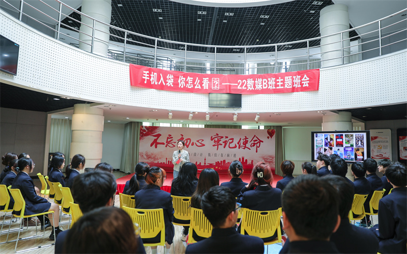 22数媒B班开展了“手机入袋,你怎么看”的主题班会,同学们畅所欲言,表达了对手机入袋的看法,分享了优化手机入袋的措施。学生金灵玲说:“这样的主题班会很有意义,让学校既能了解学生心声,又能听取学生建议。通过参与艺文工坊、红色讲坛、志愿青春等形式多样、内容丰富的职业基本素养课程,提高了自主性,培养了创新思维。”