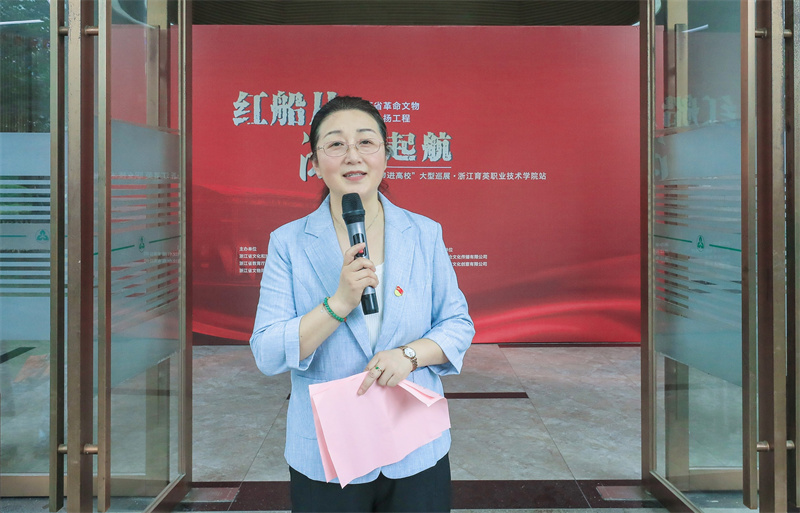 思政教师代表朱珠担任首场讲解员。她说:“此次巡展以物说史、以物见史,仿佛徜徉于中国共产党在浙江的百年风华中。作为一名思政课青年教师,通过这次活动,我再一次感受到了革命文物的力量。革命文物所承载的党和人民英勇奋斗的光荣历史、感人事迹,是一笔宝贵的财富,也激励我在教学中引导学生厚植家国情怀,传承红色基因。”