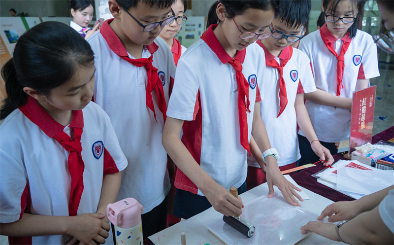 巡展现场还专门设有“红船起航”——版画印制体验和“信仰”“前途光明”——书签制作体验活动。