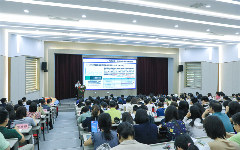 丁金昌从六个方面对本学期主要工作进行回顾总结。他说,全校上下凝心聚力,坚持党建引领,深化立德树人铸魂工程,以类型特色为抓手,以数字化升级为创新驱动,完善育人体系,加强二级管理,圆满完成党政工作要点各项主要工作,并取得丰硕成果,学校整体实力进一步增强。一是开拓进取,学校办学声誉不断提升;二是守正创新,党建教育教学融合并进;三是秉要执本,教学内涵建设持续深化;四是群策群力,学生素质提升成效显著;五是提升能力,服务社会扩大品牌效应;六是激发活力,两级管理实现挖潜增效。他对所有为学校各项工作付出辛勤劳动的教职工表示感谢。