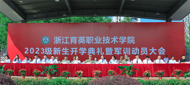 军训团团长孙鑫虎,校长丁金昌,常务副校长黄爱平,党委书记、副校长、军训团政委谢鑫,党委副书记、副校长、军训团副团长王敏,副校长徐晓斌,纪委书记、副校长崔海辉,军训团参谋长周超权,各单位和有关部门领导在主席台就坐。全体参训教官,校友代表和2023级全体新生、新生辅导员等参加开学典礼。谢鑫宣读军训团建制和干部任命文件。王敏主持大会。
