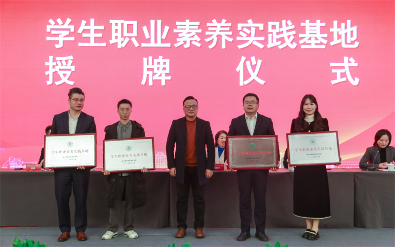 王敏为宁波驰田集团贸易有限公司、宁波文化广场朗豪酒店、宁波普罗物业服务有限公司、宁波三齐电子商务有限公司等4家校友企业授予“学生职业素养实践基地”。