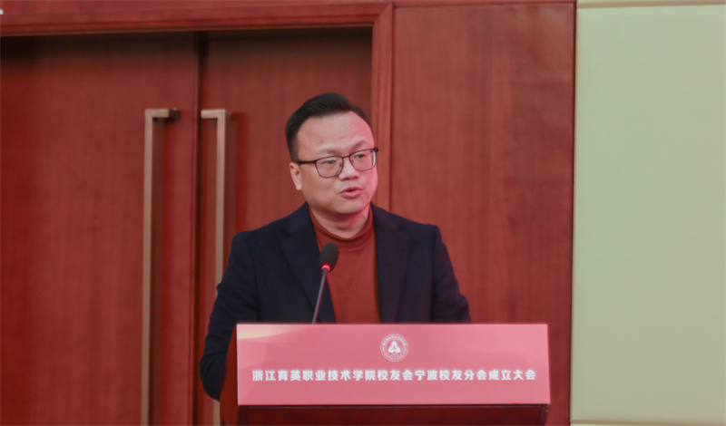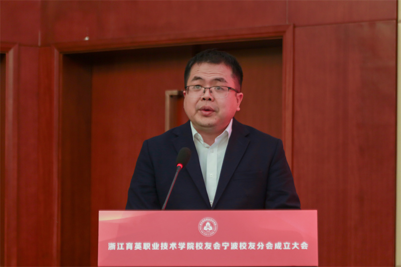 王敏代表学校全体师生对宁波校友分会的成立表示热烈祝贺,对宁波校友长期以来对学校的关心和支持表示感谢。他说,广大宁波校友在各自领域发出了育英学院最响亮的声音,涌现出一大批社会各界有影响力的人才。校友永远是育英最美好的名片,母校永远是校友最鲜明的标签,校友永远是评价办学水平最好的标尺。一直以来,学校扎实开展校友工作,以情感为纽带,以沟通为基础,以活动为载体,以服务学校事业发展为目标,形成了学校关心校友、校友热爱母校,相互支持、共同发展的校友工作新局面。希望未来宁波校友分会能进一步加强校友与母校间、校友与校友间、校企校地间的联络合作,在成就自己事业的同时,一如既往地关心母校建设和发展,协助做好产学合作、职业素养提升、实习就业等相关工作,服务学校和地方经济发展,贡献育英智慧和力量。