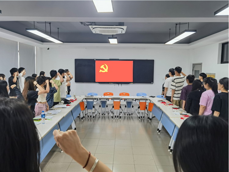 活动最后,与会党员在学院党总支委员、学生第一党支部书记丁月明的带领下重温入党誓词。铿锵的誓词回荡在活动现场,也响彻在每位党员的心中,激励了党员们进一步坚定理想信念,拥抱对党忠诚的政治品格。