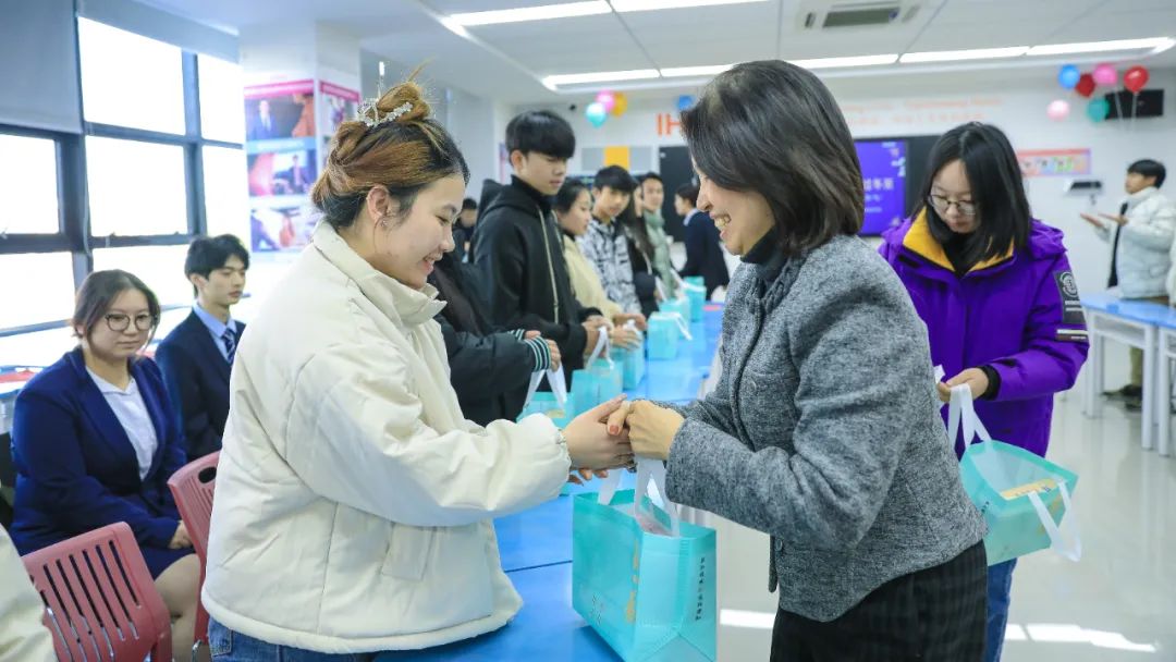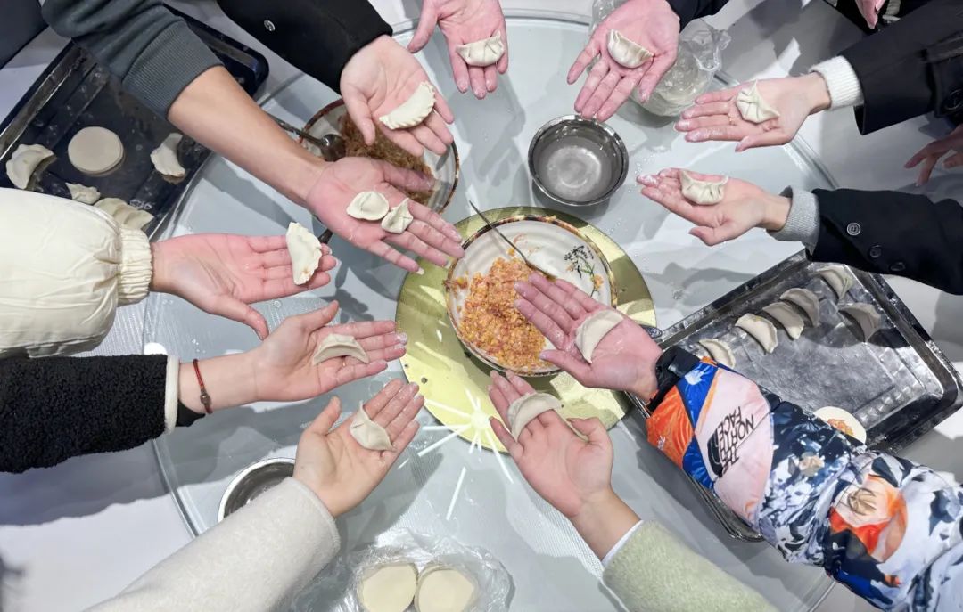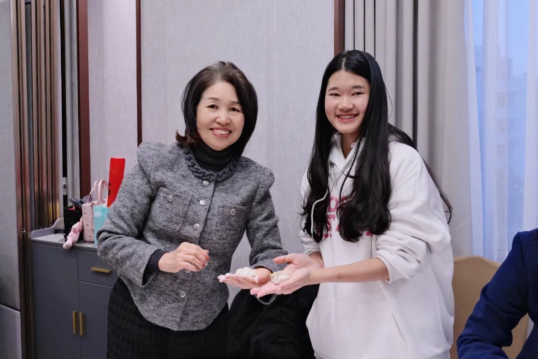 2023级酒店专业19名老挝留学生和14名班助志愿者互赠纪念品,班助们分别带来了自己书写的寓意“福气满满”的96个福字、寓意好运的兔子剪纸、寓意中老友谊“环环相扣”的熊猫钥匙扣,还有的带来了棉手套、定制水杯、书签等礼品。教室气球上系着的卡片上写满了老挝留学生对志愿者说的心里话。老挝留学生班副班长安在欣说:“黄校长耐心地教我们包饺子,让我们这些身处异国他乡的留学生感受到了家的温暖。通过包饺子、互赠礼品这种沉浸式、互动式、体验式学习方式,让我们加深了对中国传统文化的了解。”