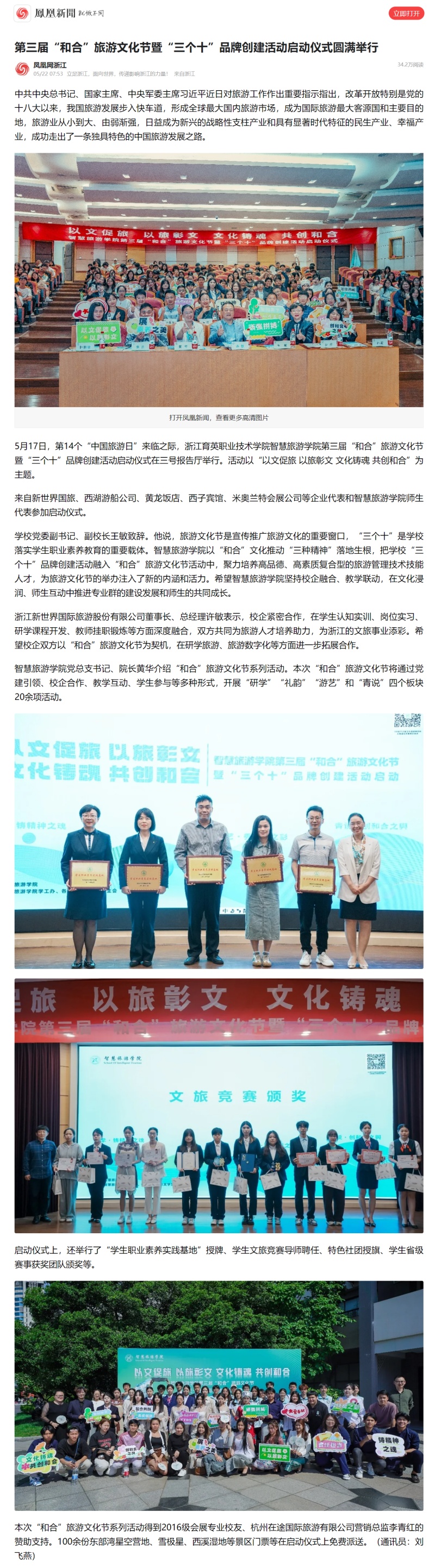 【凤凰网】第三届“和合”旅游文化节暨“三个十”品牌创建活动启动仪式圆满举行