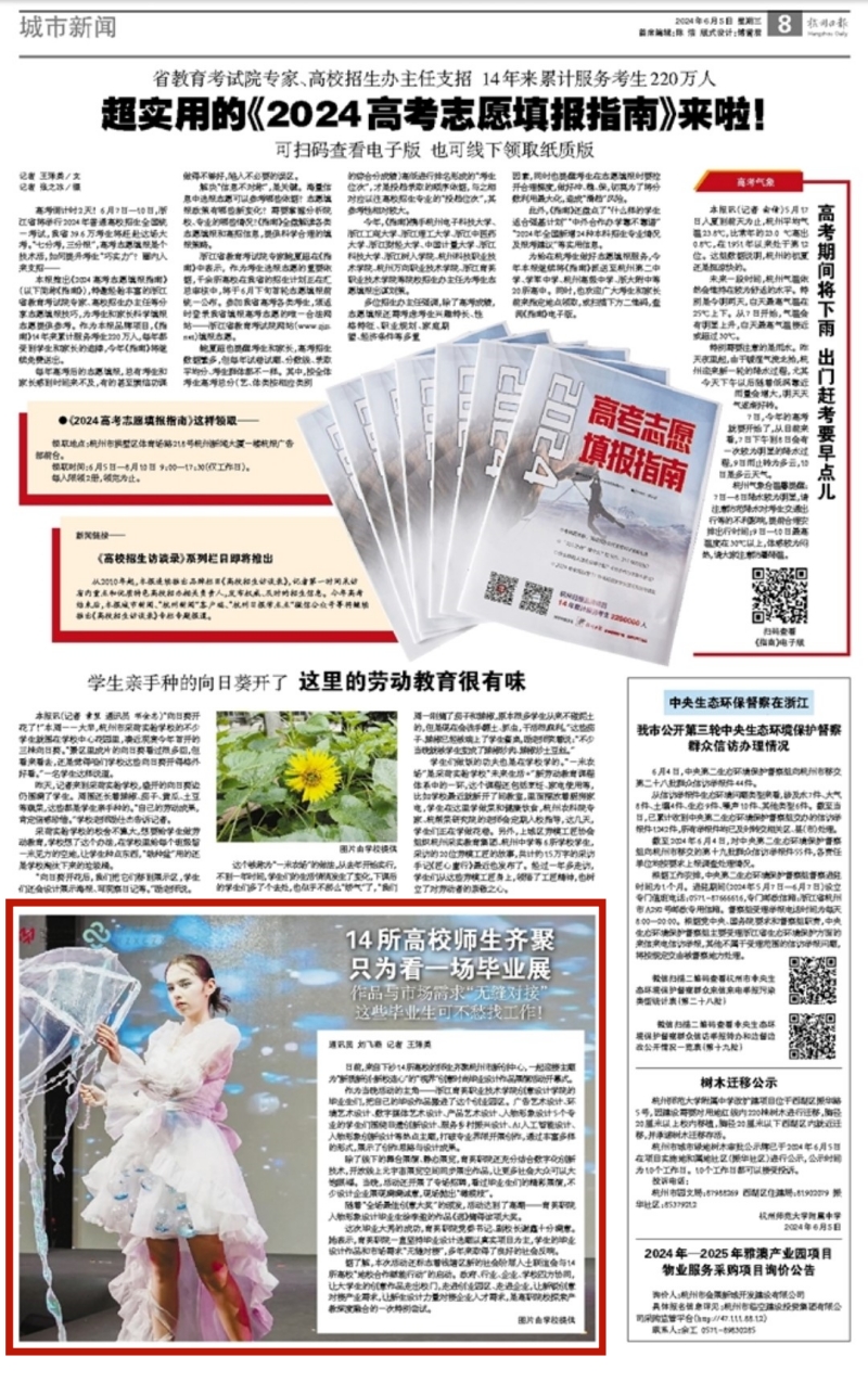 日前,来自下沙14所高校的师生齐聚杭州市新创中心,一起迎接主题为“新质新创·新校连心”的“视界”创意时尚毕业设计作品展演活动开幕式。