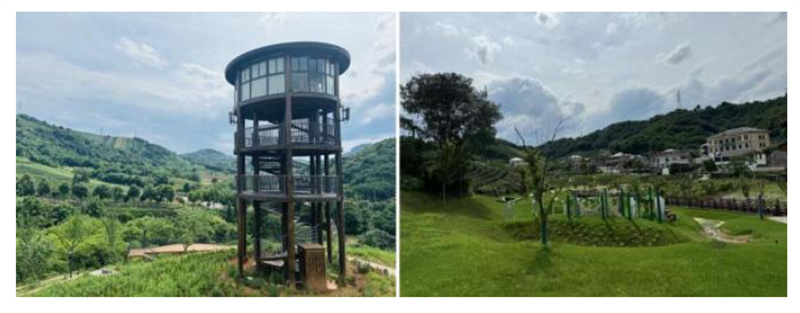 进入枫岭村,成员们便被“漫山遍野”的茶色所吸引。一片片翠绿欲滴的茶田铺展开来,层层叠叠,绵延至远方。据枫岭村职业经理人唐红梅老师介绍,现在茶山上共铺设了7条游步道,设置了十多个创意网红打卡点,让游客在感受茶文化之余,也能享受登山赏景的乐趣。通过和唐老师的深入交流可知,枫岭村通过茶产业与乡村旅游的深度融合,打造了系列茶文旅精品项目,如茶艺体验、精品民宿、茶家乐、书法培训、农事耕作等,配以乌龟山、八卦茶园等自然景观,共同绘制了一幅生动和谐的乡村新画卷。