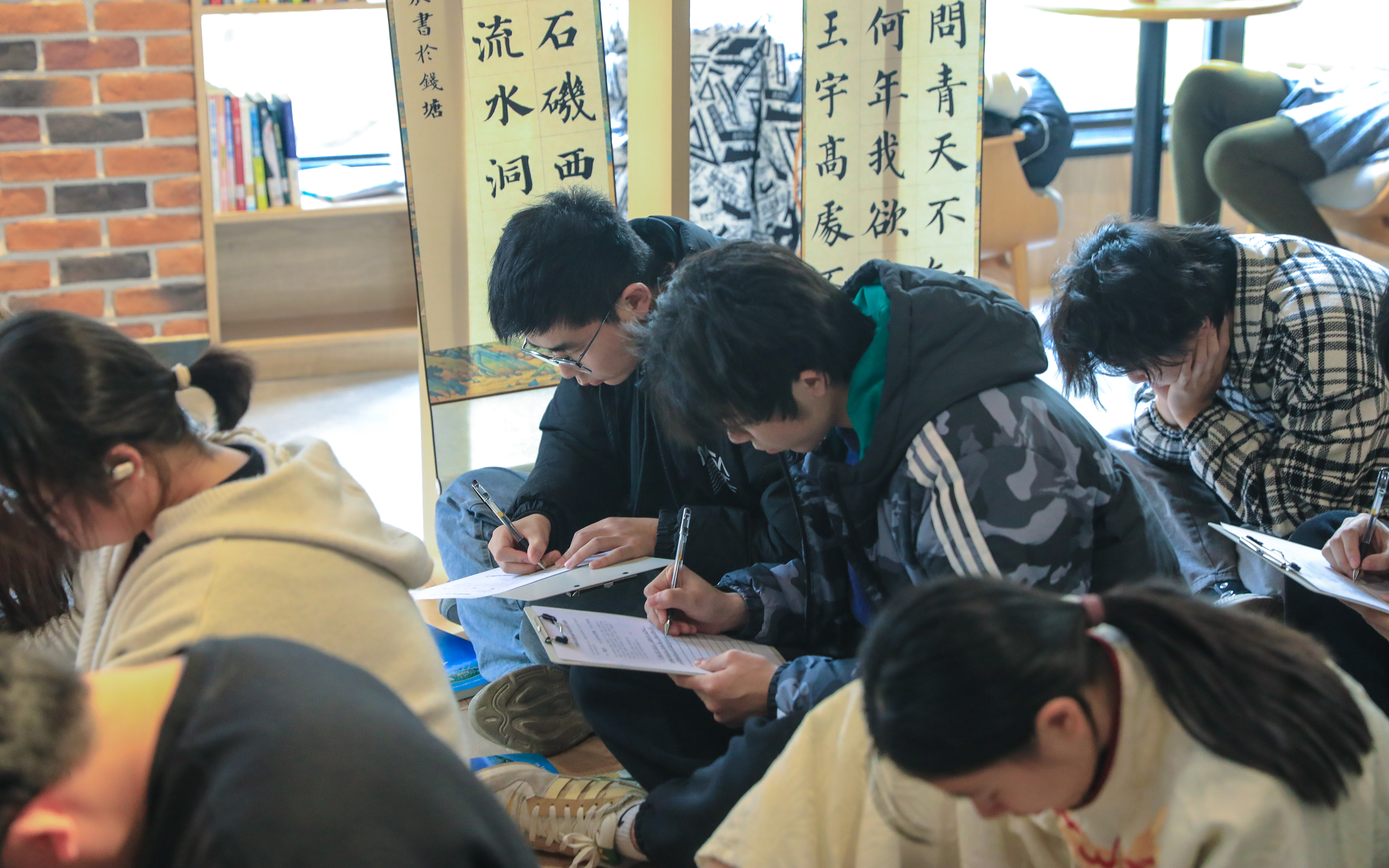 活动当天,书吧内阅读气氛浓厚,整齐摆放的蒲团、悬挂的主题横幅、图书馆珍藏的书法作品等为现场增添了许多“氛围感”。