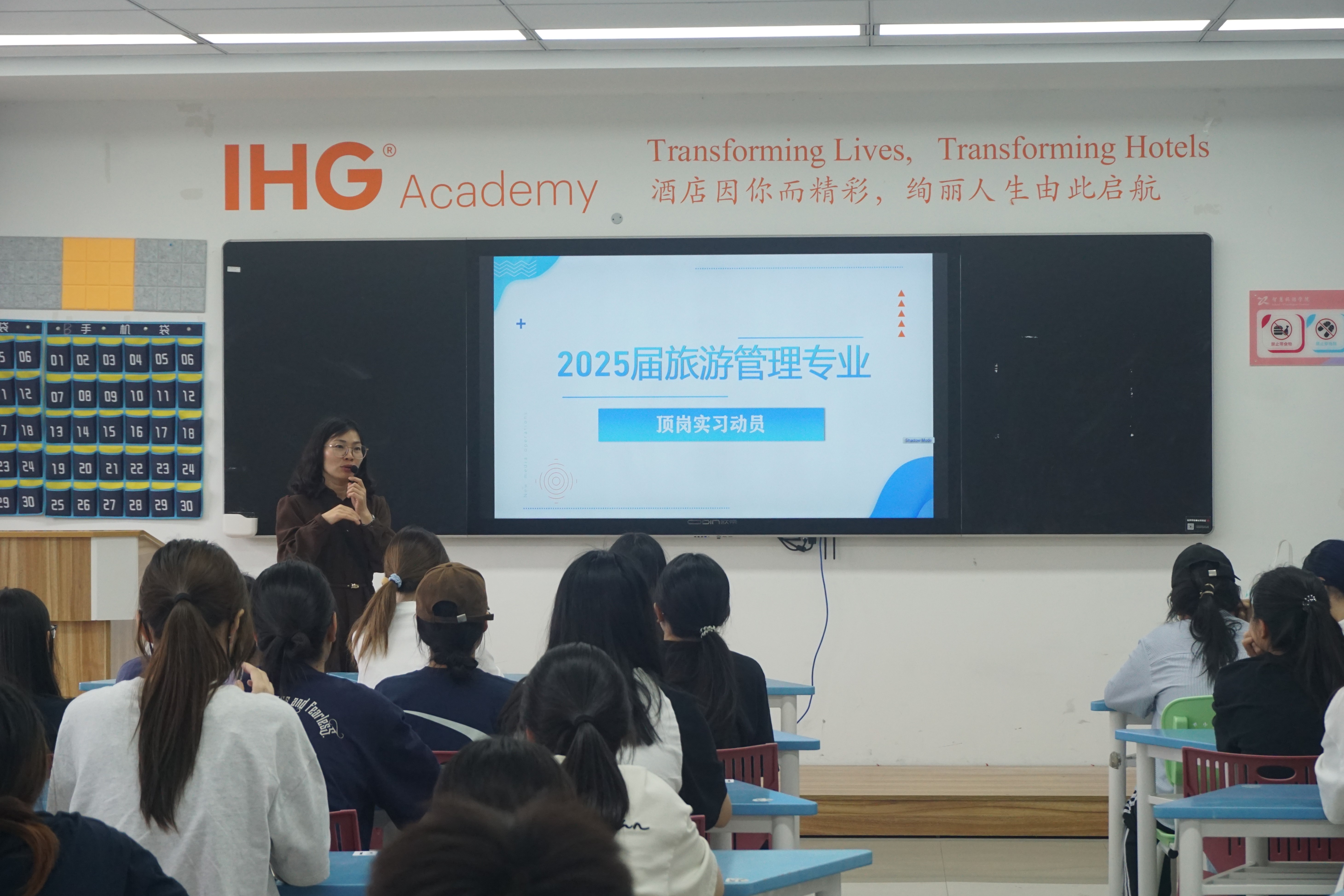 为全面贯彻和宣传学院《实习管理实施细则》相关规定,规范和加强学生顶岗实习工作,引导学生了解相关规定要求,提前做好实习前各项准备,智慧旅游学院旅游管理专业于5月7日下午召开25届学生顶岗实习动员会。会议由旅管专业负责人徐芳老师亲自动员,22级旅管专业全体学生以及专业老师参加。