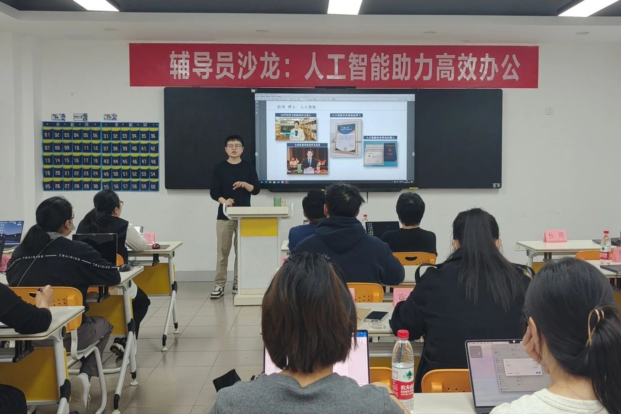 为积极探索人工智能技术在思政教育中的应用路径,提升学工人员的信息化素养与工作效率,赋能辅导员工作高质量发展,近日,学务部举办了以《人工智能助力高效办公》的主题沙龙活动。本次沙龙由人工智能领域知名专家、未可知人工智能研究院院长、中国社会科学院技术经济学博士杜雨主讲。学校党委副书记、副校长王敏,学校党委委员、学务部主任邬佳,学务部副主任王亦飞、部分辅导员以及学务部全体成员参加了培训。