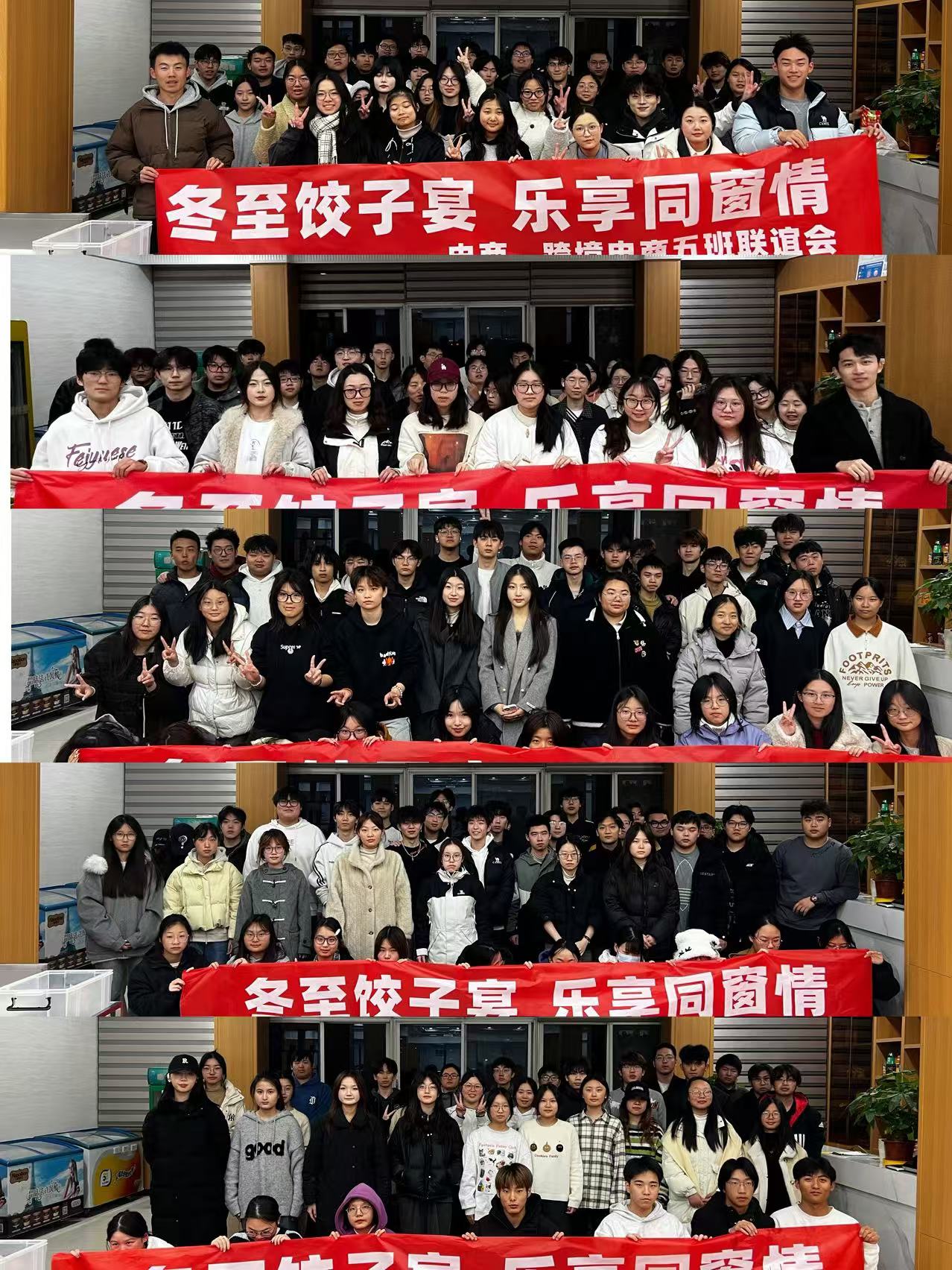12月19日,正值冬至佳节,一场别开生面的饺子宴在学校贤园餐厅内热烈展开。此次活动由23电商A、B班,23跨境A班,以及24跨境A、B班联合举办,旨在增进班级间的友谊,共同庆祝这一传统节日。