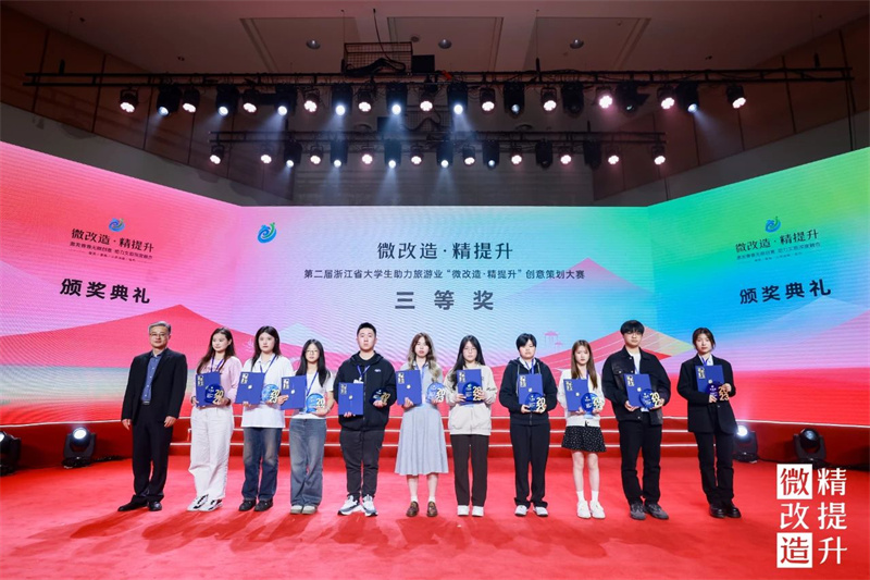 近日,由浙江省文化广电和旅游厅主办的第二届浙江省大学生助力旅游业“微改造·精提升”创意策划大赛颁奖典礼在浙江艺术职业学院举行。我校创意设计学院学生陈玥彤、冯嘉冰、李品坤、王俊尧、林歆雅作品《双浦印象文化展厅设计实施项目》获二等奖,指导老师郭恩文。王梦琪、沈佳闻、陈瑶作品《有橘东篱——美丽乡村庭院设计方案》获二等奖,指导老师徐群英。智慧旅游学院学生陈淑莹、许渊、代盈盈作品《灵云小筑庭院改造设计》获二等奖,指导教师姜宏刚、沈晚笑。周叶沙、竺慧菁、雷如意、郑源作品《灵云小筑微改造设计》获三等奖,指导教师黄华、方俊。