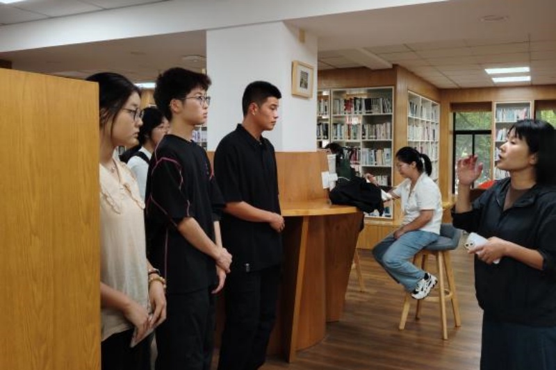 图书馆各部老师实地讲解图书馆的服务内容,就图书的借还制度和规则、书库的分布、图书分类、如何找到所需图书、借还图书注意事项等内容进行介绍,重点讲解了读书活动的参与方法和电子资源的使用途径,引导学生关注图书馆各新媒体平台,并带领新生代表分批次有秩序地参观图书馆流通部、电子阅览室及书吧。