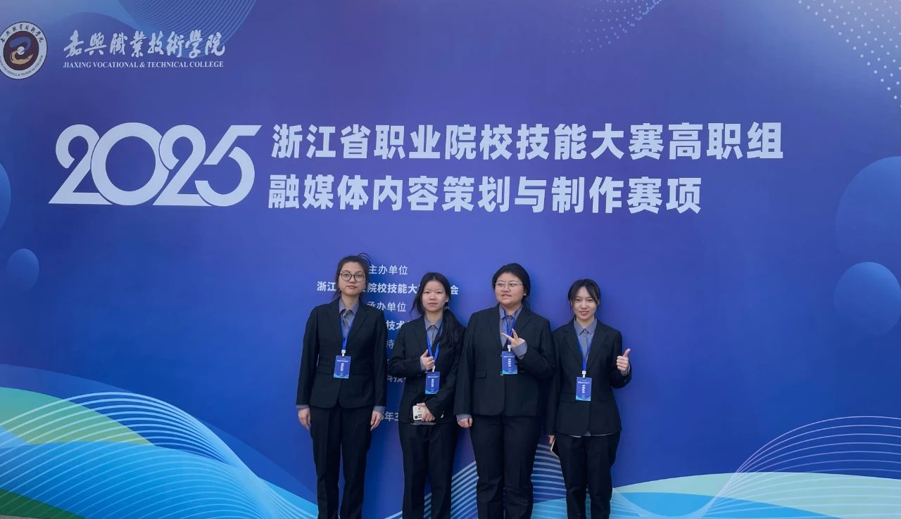 罗桂月、李婕妤、薛慕然、朱煜团队获融媒体内容策划与制作赛项金奖,指导老师杨昕、孙斌;