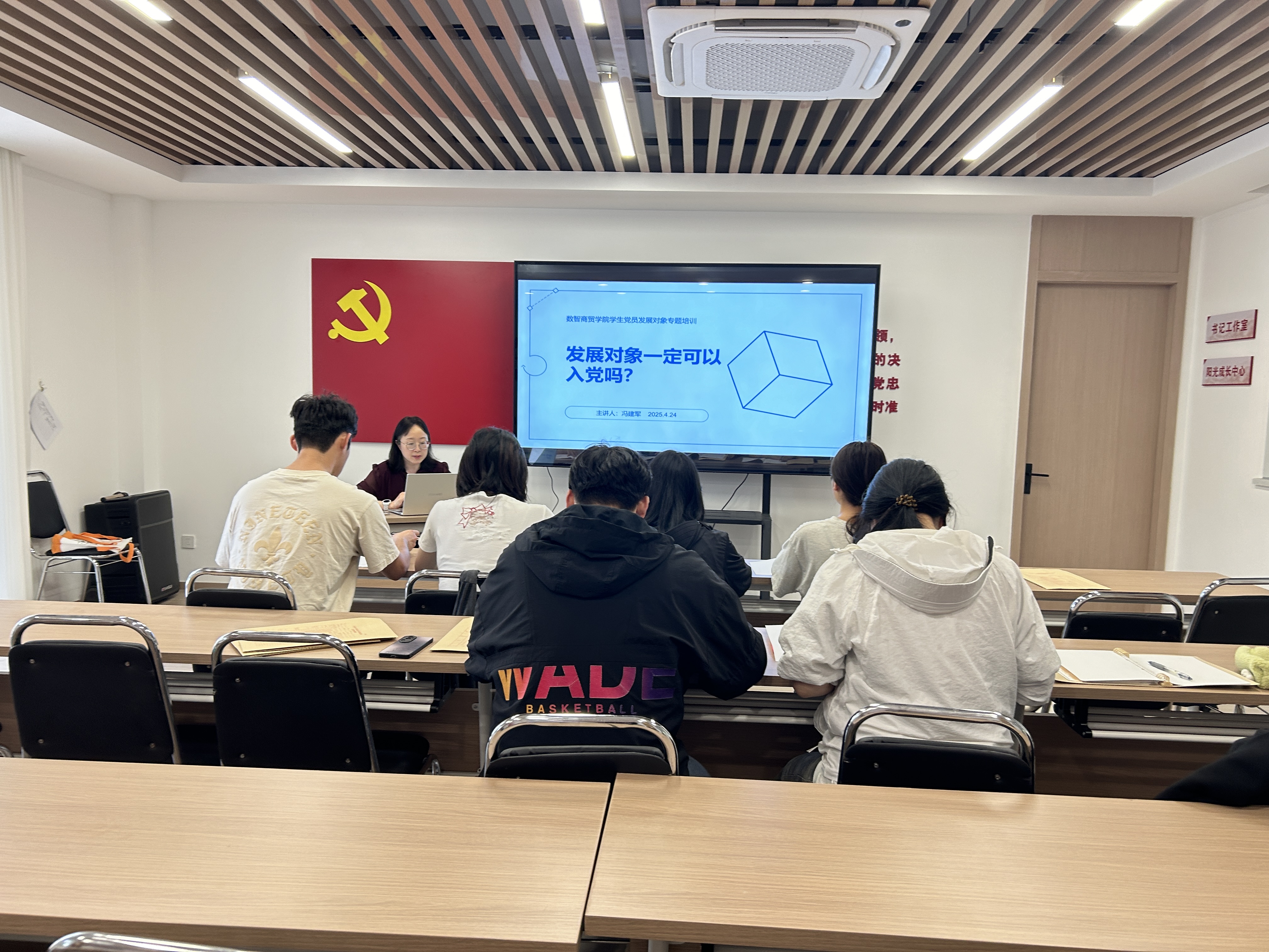 为进一步规范党员发展流程,加强对发展对象的培养教育,数智商贸学院党总支于2025年4月24日下午在校党员活动中心组织了一次专题培训会议召,参加会议的同学为本学期的发展对象,会议由学院党总支组织员冯建军老师主持,主要围绕发展对象培养流程中的重点问题展开。