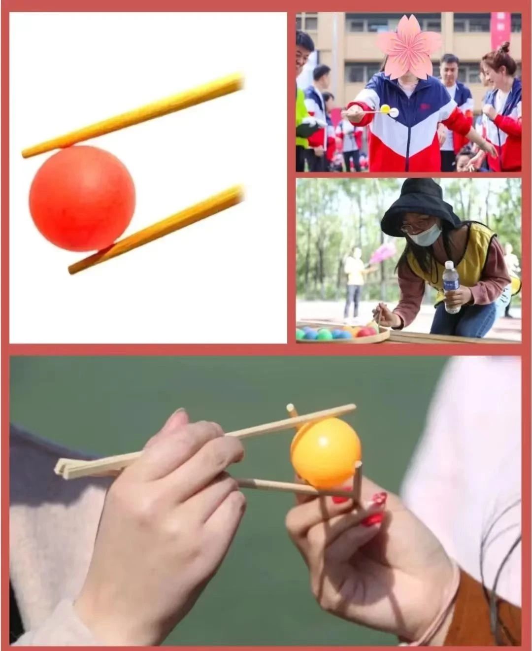 劳动节怎么可以少得了多人比赛!快喊上你的好朋友一起来吧!每3人组成一队,队员排成纵队。两对一起PK,比赛开始后,队员需用筷子夹住乒乓球,依次传递至队尾完成接力。在2分钟的限时内,全队连续成功传递乒乓球的次数最多者获胜。未参赛队伍可在旁通过扮鬼脸、大声倒计时等方式进行干扰,但不可触碰选手或道具哦~